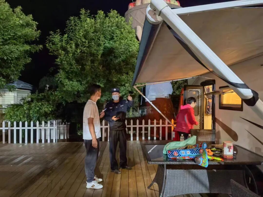 耿志永一边给主管人员打电话提示,一边前往录制现场检查消防安全、用水用电安全,确保每一个细节都能考虑到。节目拍摄期间,他干脆带着辅警住在村里。
