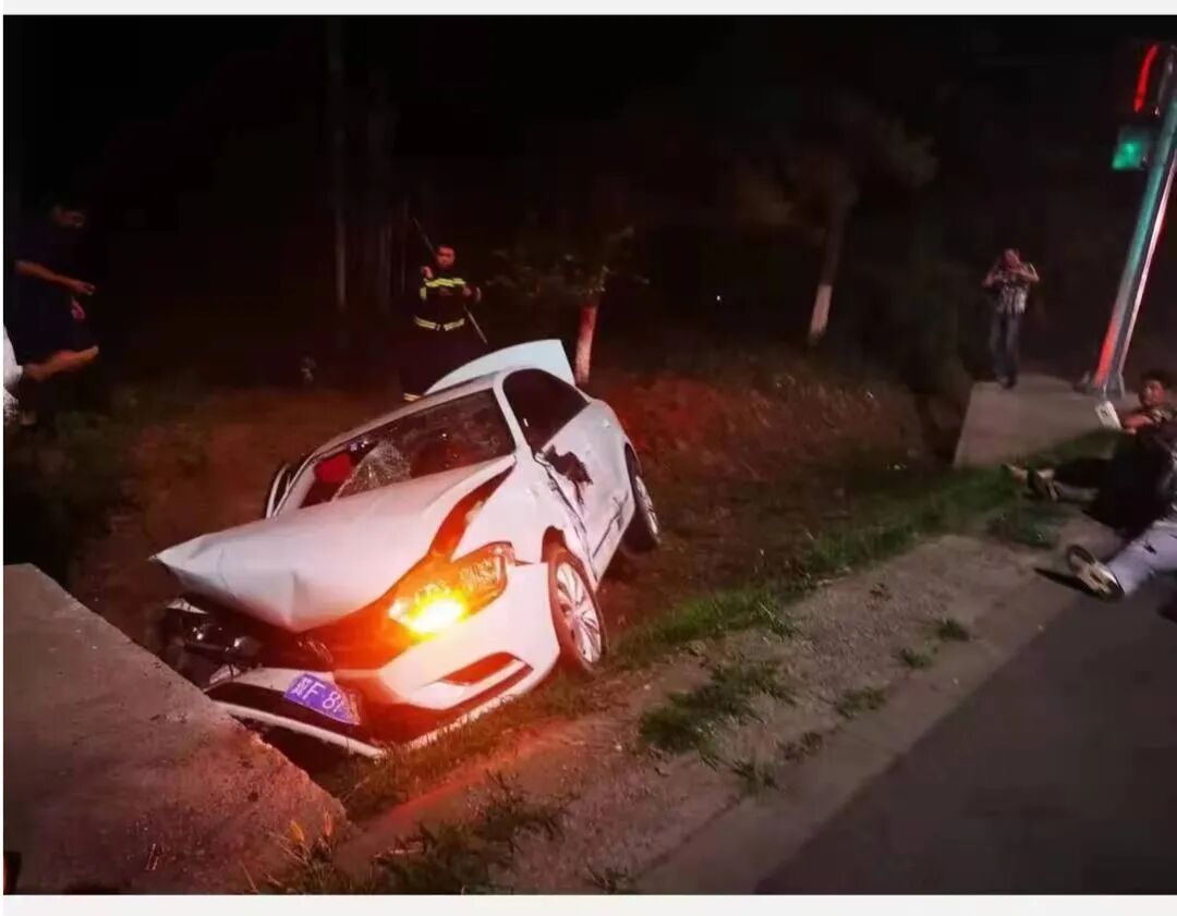 晚8时左右,陈远、王刚等人从金海湖副坝处驱车向平谷城区方向行驶,途经甘营村路口等待红灯时,突然听到“嘭”的一声巨响,只见一辆白色轿车以非常快的速度冲进了路北的深沟中,撞到了沟底的水泥墩子上。陈远、王刚赶忙下车,发现地面上全是车祸后的碎片,扎到深沟中的汽车三轮着地,一轮悬空,车头正冒着滚滚的浓烟,随时有着火爆燃的危险。