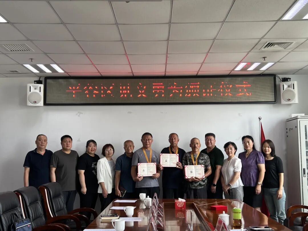 7月31日,平谷区民政局举行见义勇为颁证仪式,为张建华、冯文方、韩建军三人颁发见义勇为荣誉证书及奖章。在面对群众落水时,三位见义勇为者挺身而出,挽救了三个家庭。