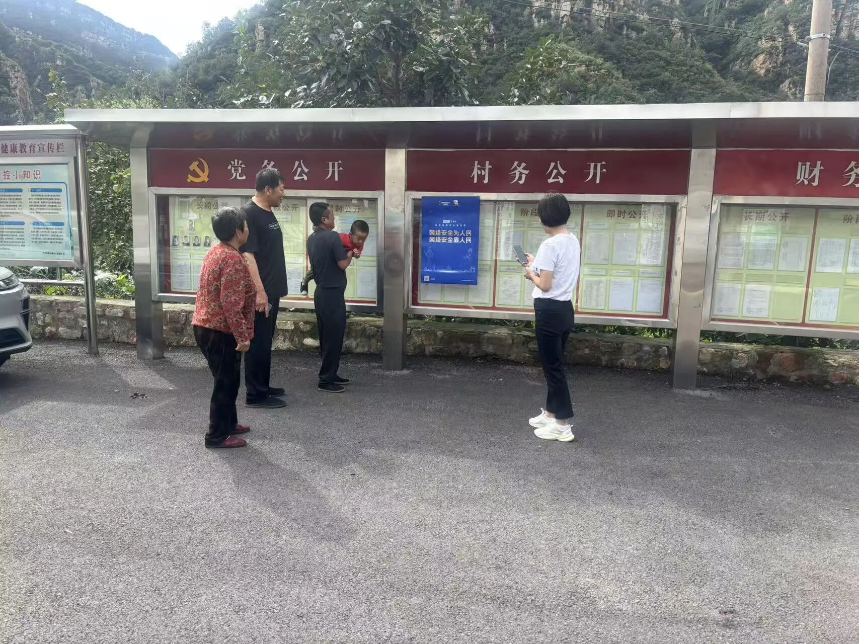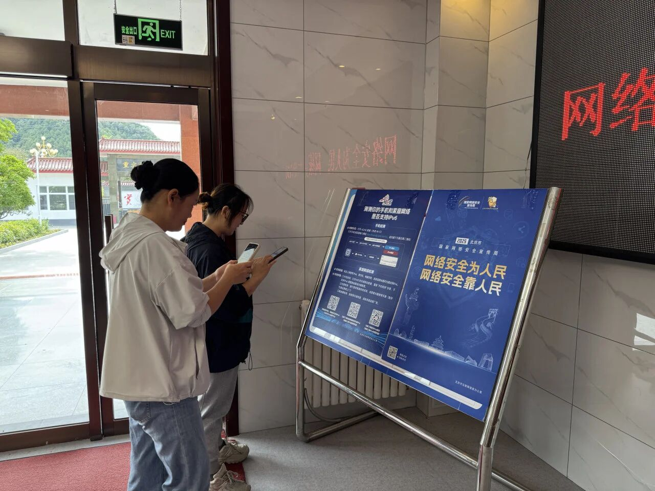 同时,在乡政府、村委会、学校、超市等人员密集场所的显眼位置,张贴了醒目的网络安全宣传海报,时刻提醒着村民关注网络安全。