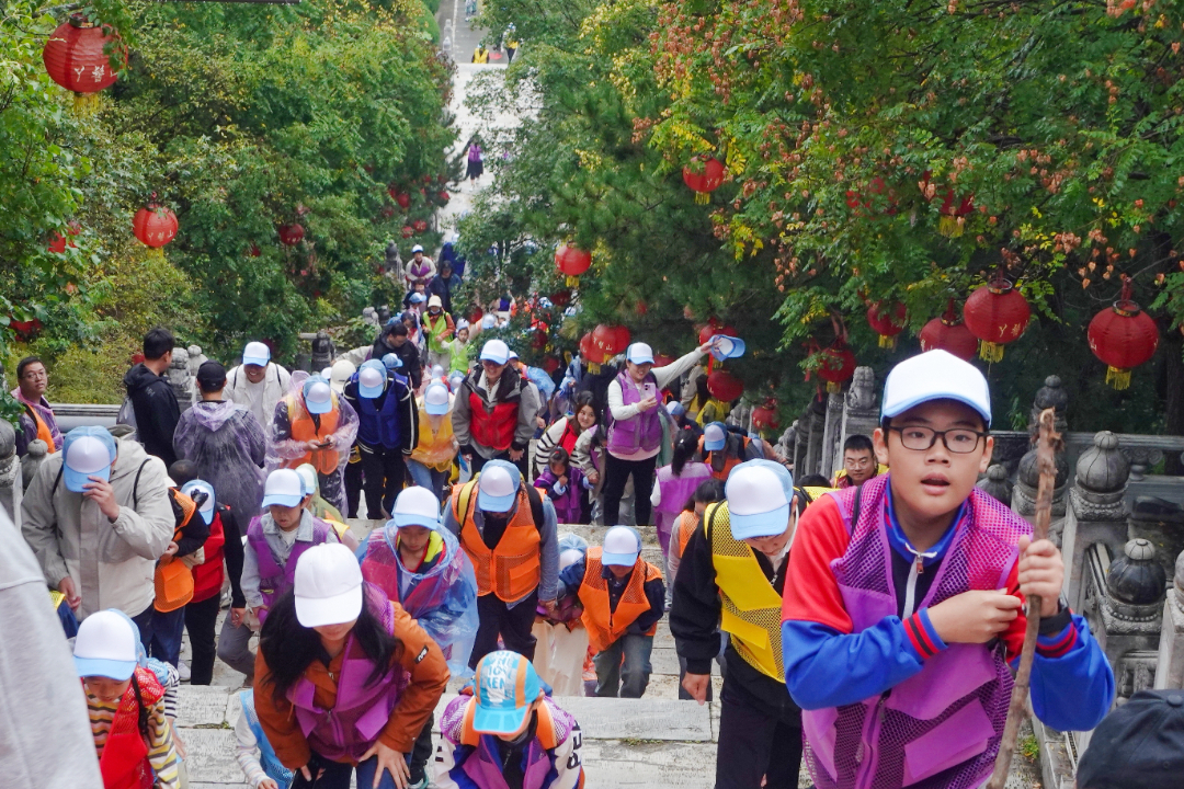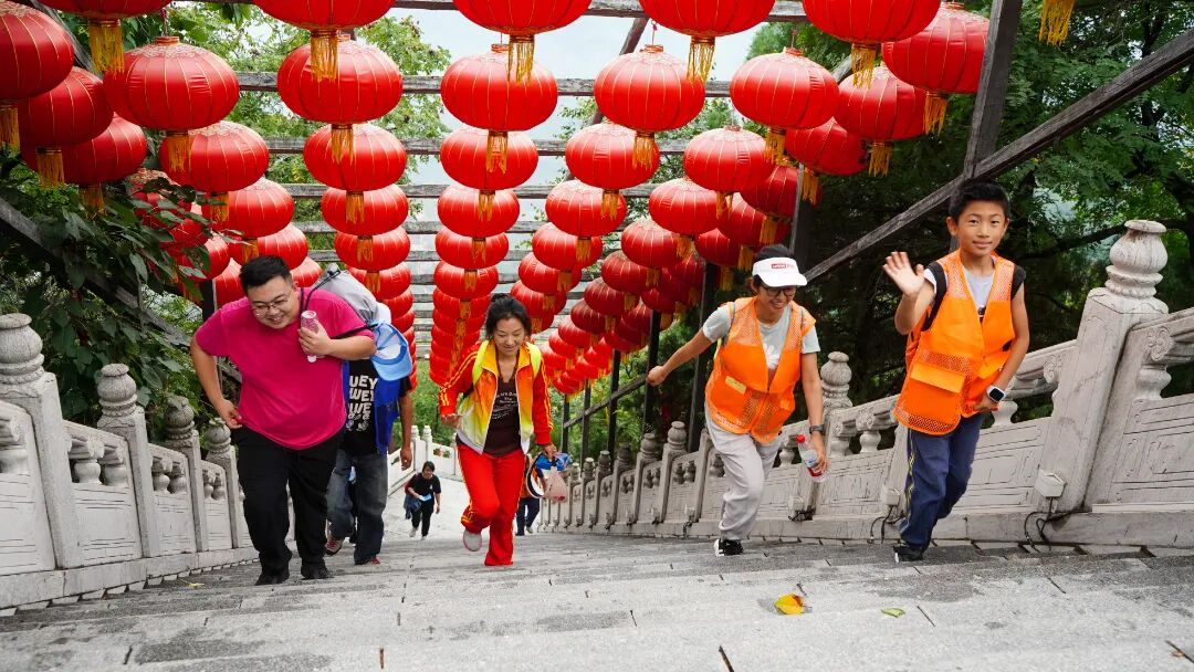 9时许,汽笛响起,10余支队伍依次出发,按照4.5公里的山地环线,沿365级祈福台阶拾级而上,经南天门抵达海拔315米的玉皇阁。尔后,顺坡道而下,沿途呼吸着山间清新的空气,领略着丫髻山的秋日美景,切身感受丫髻山的文化之美、生态之美,畅享着徒步登山、绿色生活带来的快乐。