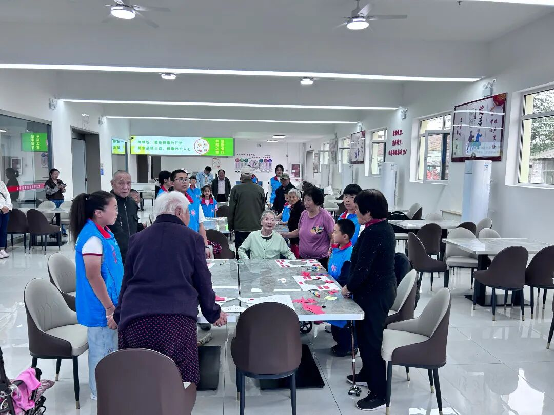 活动在轻松愉快的氛围中拉开帷幕。DIY扣画制作环节吸引了老人们的浓厚兴趣,大家围坐一堂,手持画笔与贴纸,眼中闪烁着期待的光芒。青少年志愿者们细心陪伴在旁,耐心讲解绘画技巧,协助老人完成一幅幅以国庆为主题的创意作品。