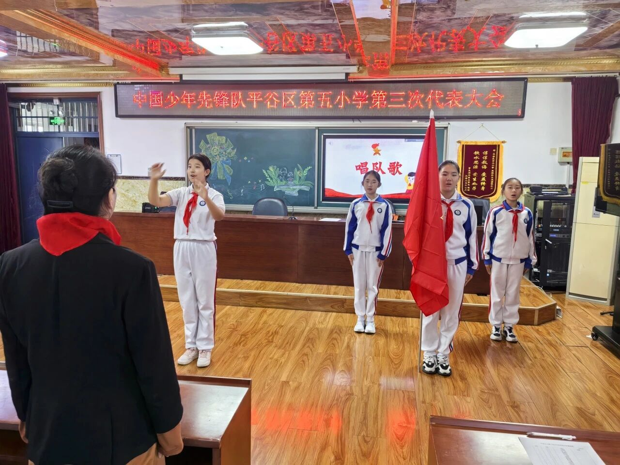 愿平谷五小的每一位少先队员都能在队旗的指引下,靠近光、追逐光、成为光,争做新时代好少年!