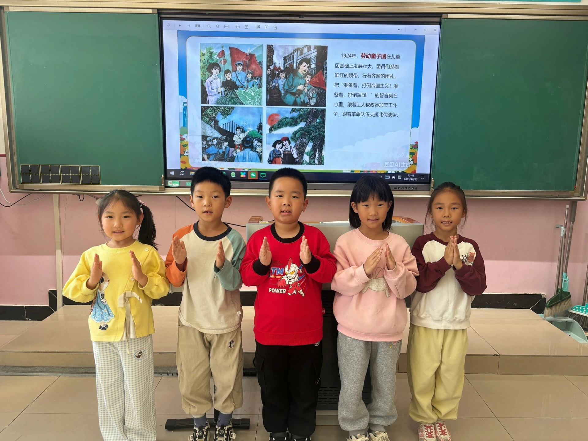 少先队活动课上,通过少先队光荣历史的学习,引导队员们理解红领巾是红旗的一角,象征着革命的胜利与光荣的传承,增强了他们的光荣感和组织归属感。