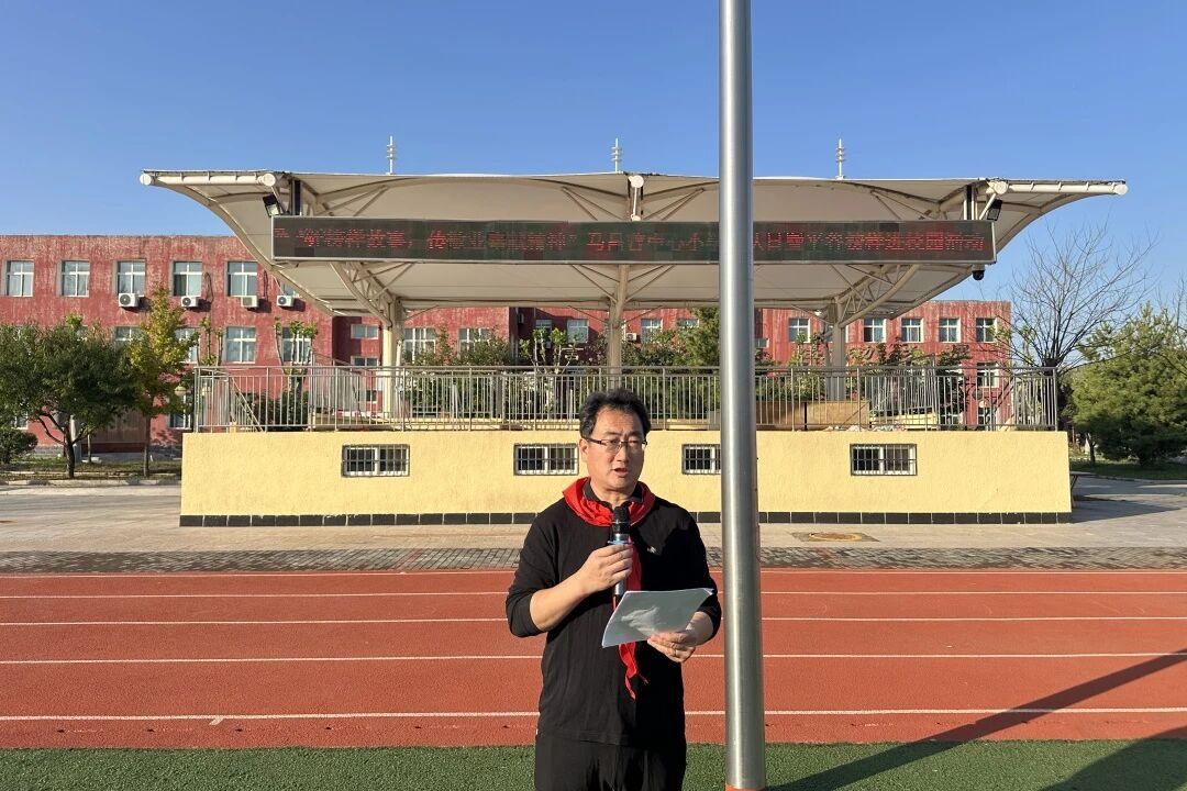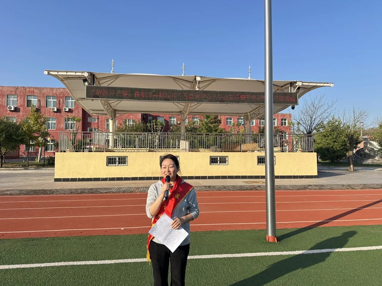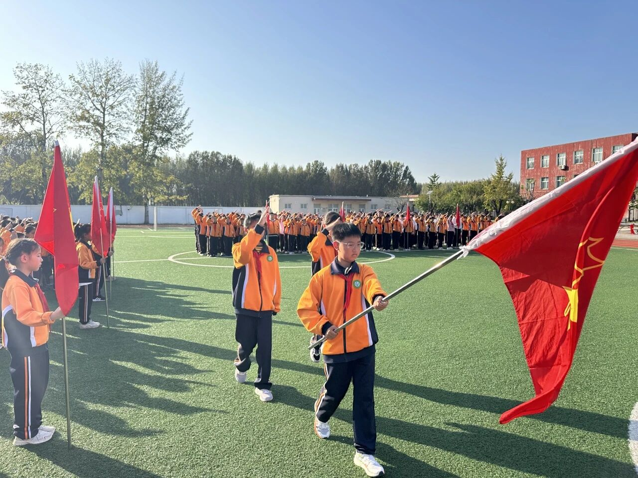 伴随着激昂的《出旗曲》,少先队旗手迈着坚定的步伐,高举队旗缓缓入场,全体队员肃立敬礼,目光紧紧追随队旗,尽显对少先队组织的崇敬与热爱,嘹亮的《中国少年先锋队队歌》传递出队员们蓬勃向上的精神风貌。