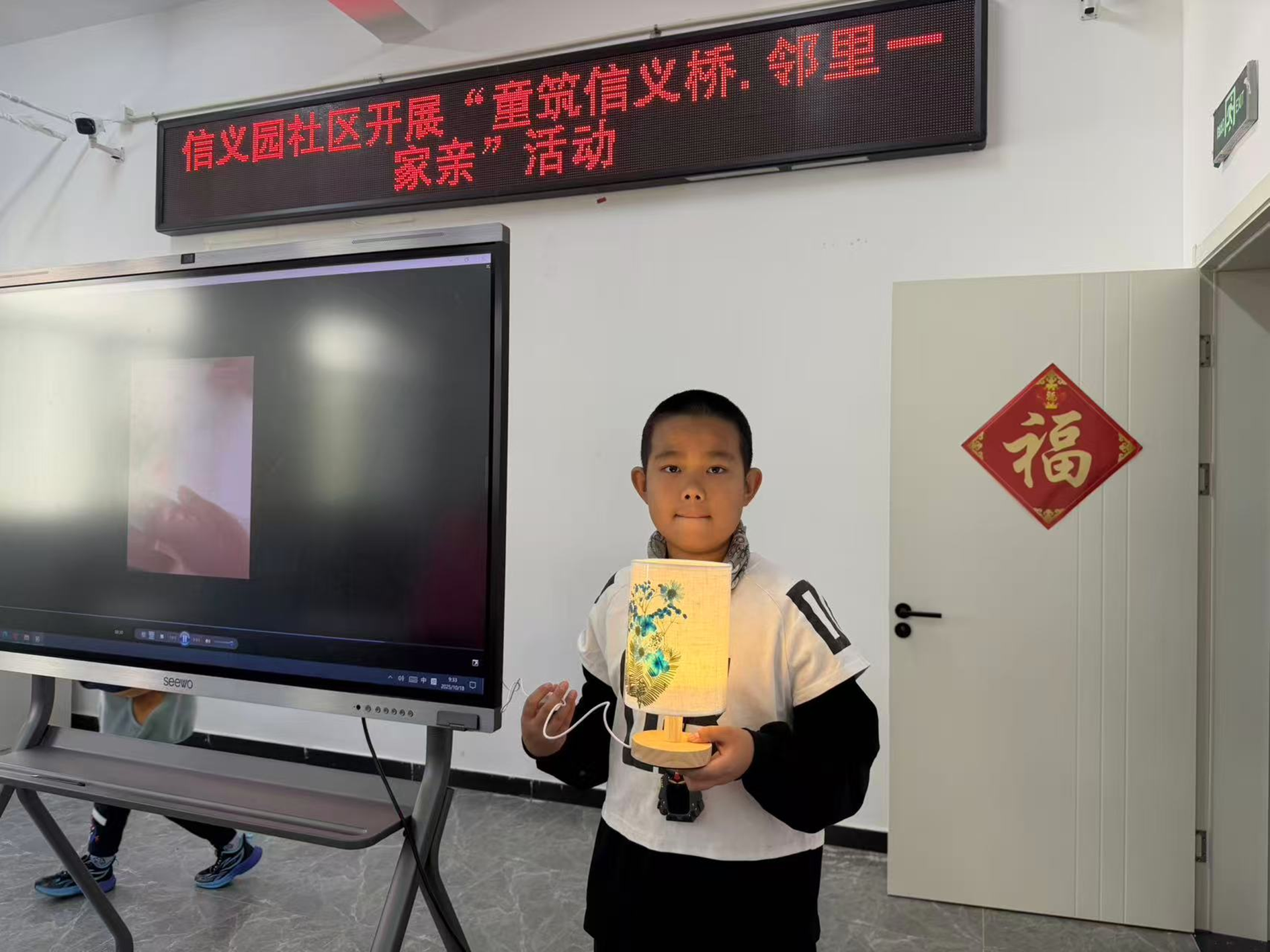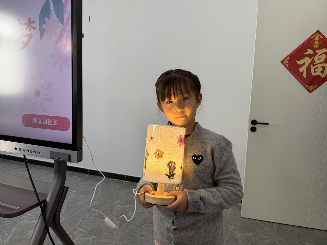 信义园社区开展“童筑信义桥·邻里一家亲”手工压花台灯DIY主题活动