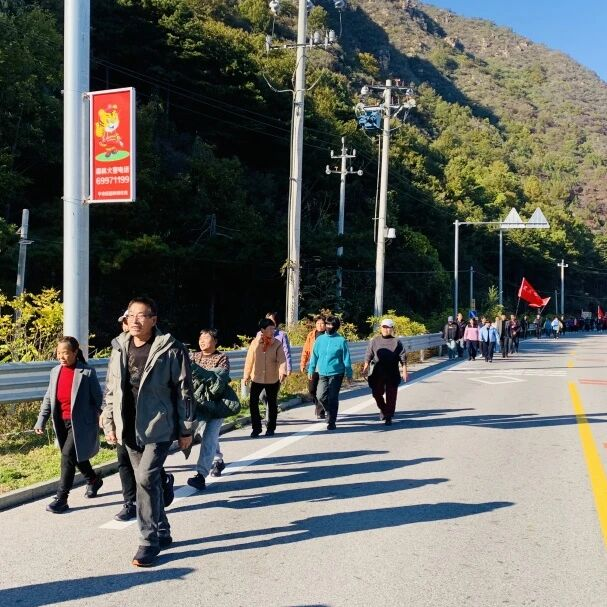 徒步赏景则更显悠闲,143名参与者按所属村分为7支队伍,沿水库步道漫步3公里,大家边走边聊,细赏碧波荡漾、层林尽染的秋日盛景,用脚步丈量家乡之美。