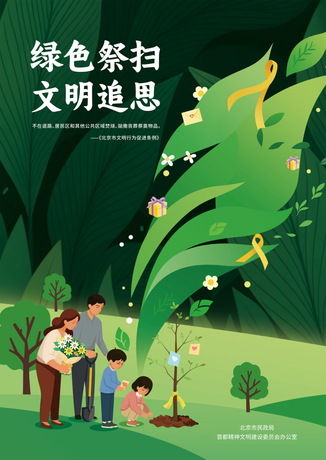 市民朋友们,社会风尚,共建共享。让我们立即行动起来,从自身做起、从点滴做起,大力弘扬文明祭扫新风,为建设美丽北京贡献应有力量!