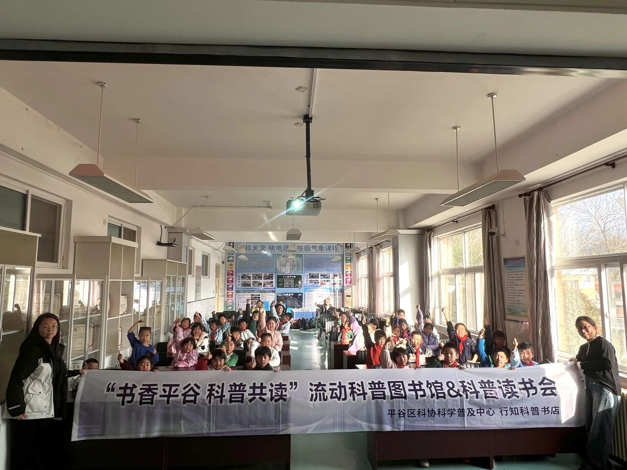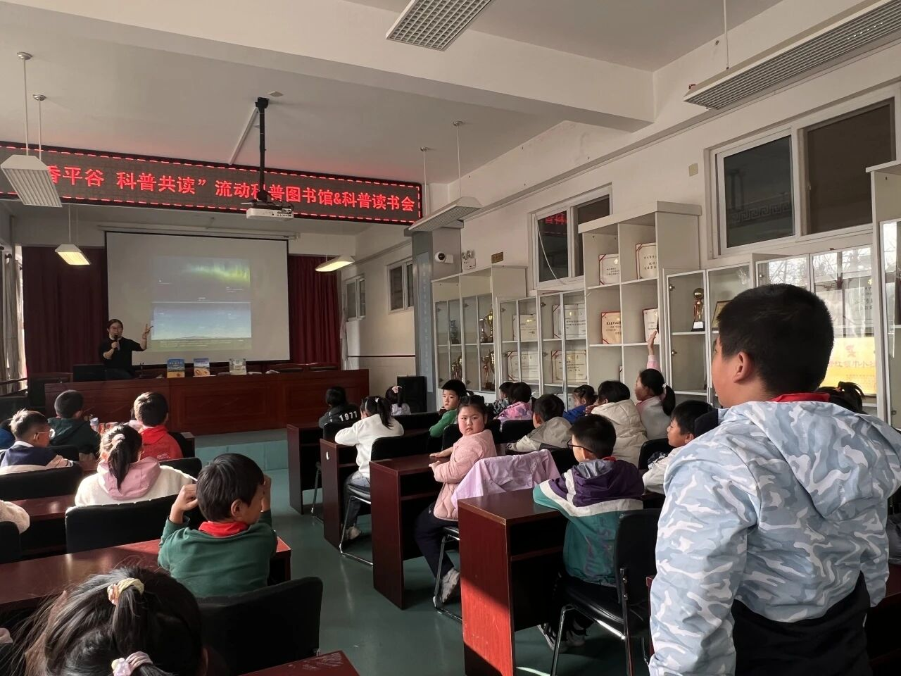 “书香平谷,科普共读”活动同步展开。潘老师以生动的讲解为引,带领学生们浸润于流动图书馆的科普书香中。在思维碰撞中,科学的种子悄然萌芽,探索未知的兴趣被成功点燃。