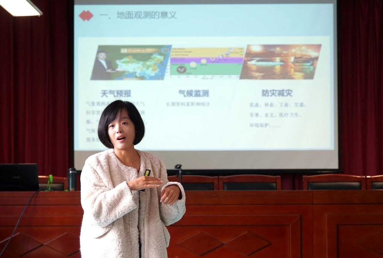 区气象局陈红霞老师结合生动案例,为学生们讲解了气温、降水、风力等基础气象知识,还带来了百叶箱、温度计等常见气象仪器。陈老师现场演示仪器的使用方法,手把手指导同学们观察读数,让大家在直观体验中学会识别气象要素,了解气象观测对生活生产的重要意义,进一步培养了学生们观察自然、探究科学的良好习惯。