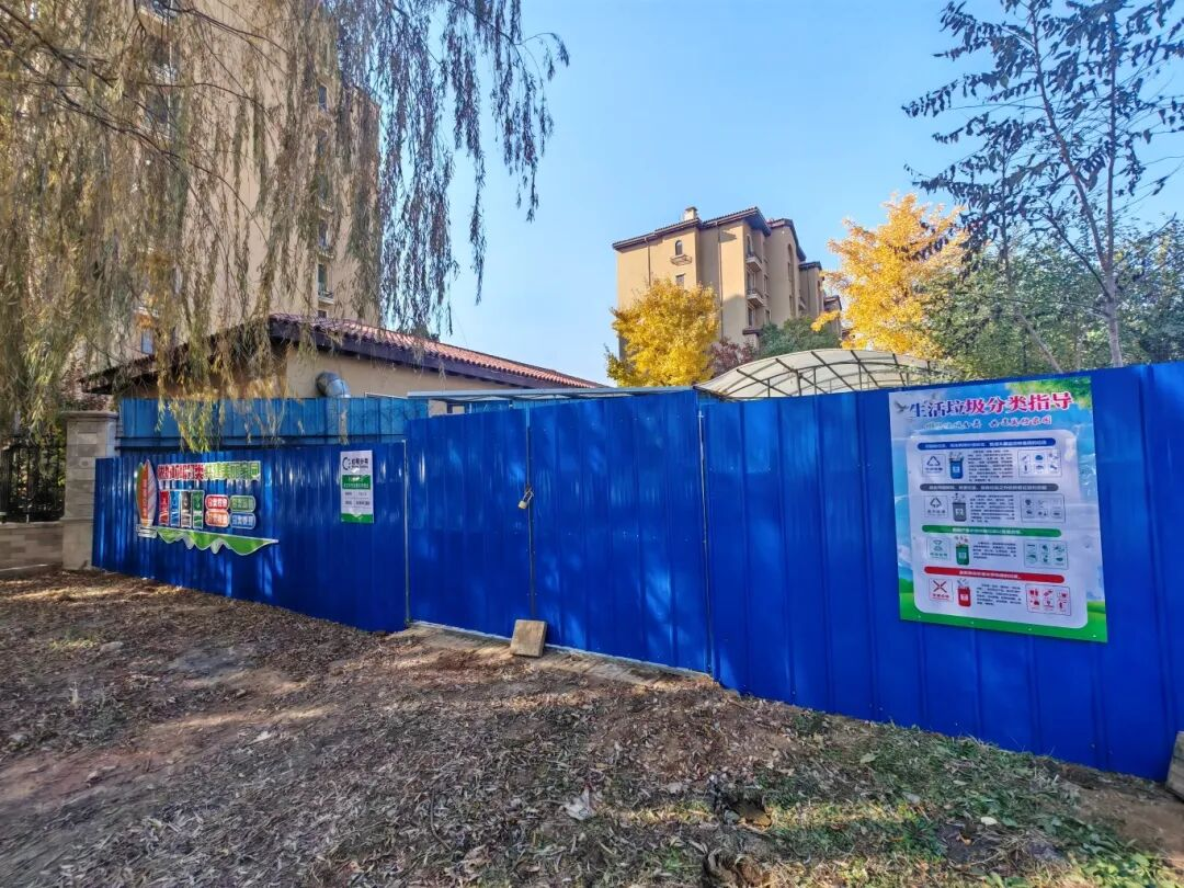 为精准破解痛点,社区多管齐下:一方面持续走访居民,广泛收集意见建议;另一方面主动联动环卫部门、小区物业,共同制定“定制化”改造方案——将垃圾桶站对接点迁移至小区东门北侧外墙处,既远离居民生活区,又为环卫车转运提供便利。施工过程中,社区聚焦“降噪、提质”两大目标:为对接点加装围挡,从源头杜绝异味扩散;优化清运路线,避开社区内部道路,最大限度减少噪音干扰。