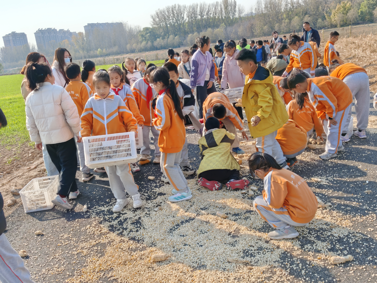 王辛庄镇开展“小学生手摇玉米脱粒“”劳动实践课