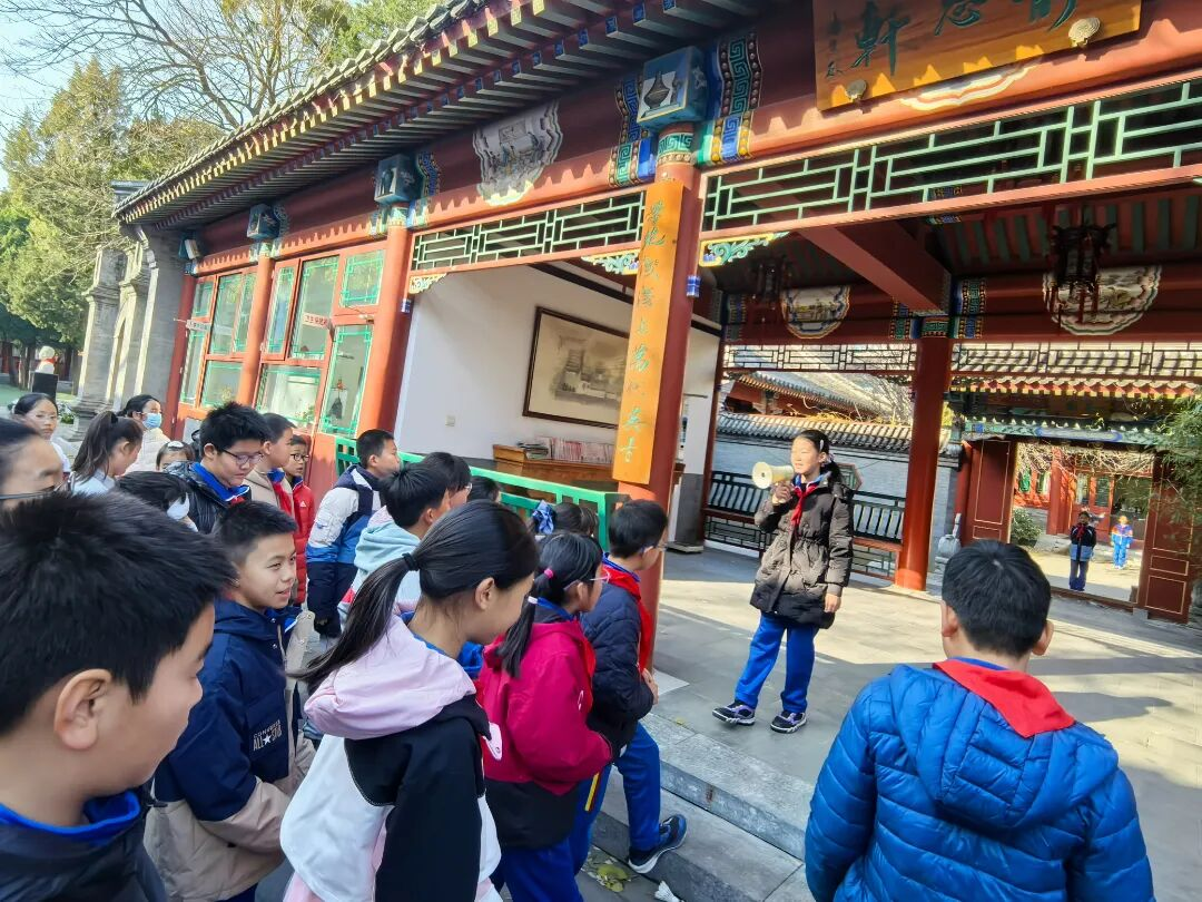 在方家胡同小学五4班“小讲解员”的带领下,同学们漫步于传统文化气息浓厚的校园。小讲解们自信从容地介绍着校园的一景一物,让门楼小学学生从每一个细节中,深入了解了其深厚的校园文化与办学特色。