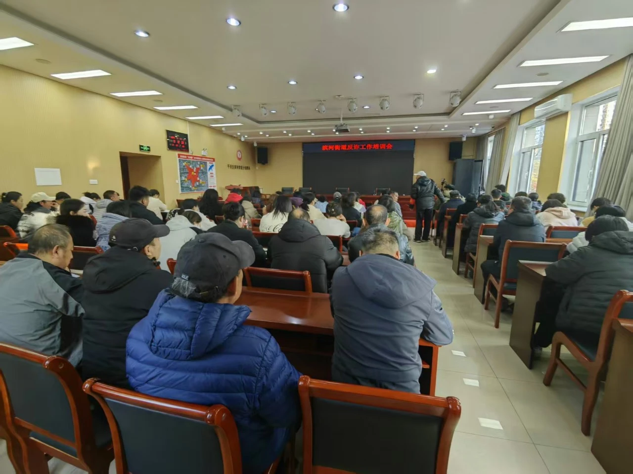 为进一步筑牢辖区反诈防线,提升基层工作人员的反诈宣传能力与应急处置水平,11月11日,北京市公安局平谷分局反诈宣防“送教下乡”大讲堂活动走进滨河街道。街道相关科室工作人员、社区书记、综治委员、网格员等 80 余人参加此次培训。