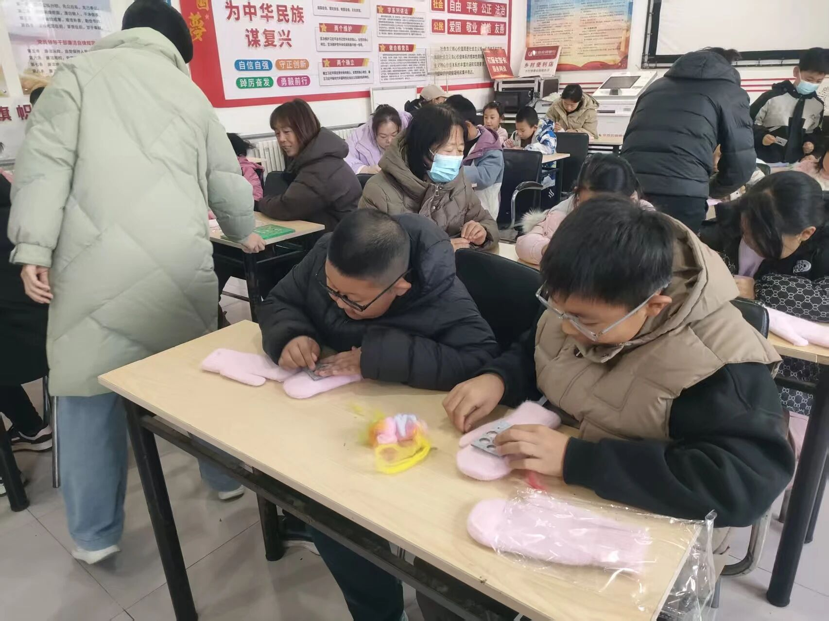 巧手织温暖 亲情满乡村,纪太务村开展手套DIY亲子活动