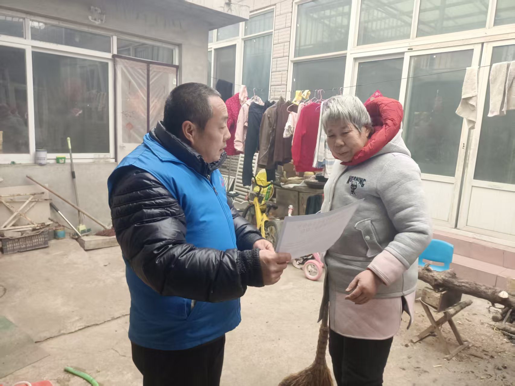 各村网格员挨家挨户走访,发放《平谷区防火安全委员会办公室致全区居民朋友的一封信》,并结合农村用火用电用气特点,用通俗易懂的语言向村民讲解防火安全知识。提醒村民规范堆放柴草、秸秆等易燃物,远离住宅和火源;定期检查厨房燃气管道、灶具是否泄漏,使用明火时务必留人看管。针对重点关爱人群,网格员们还现场排查家中安全隐患,讲解火场逃生自救方法,切实提升村民防火意识和自救能力。
