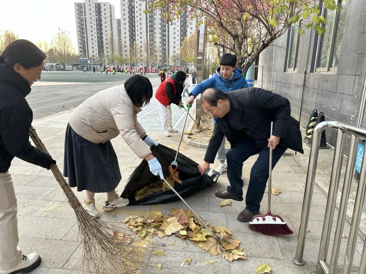 活动面向全体教师及所有学生,采用自主报名方式,在老师的带领下,同学们干劲十足。他们将操场及周边的落叶轻轻归拢,装入环保袋,并将捡拾的其他垃圾分类投放至相应垃圾桶。师生协作的场面,成为冬日校园里一道温暖而充满活力的风景。