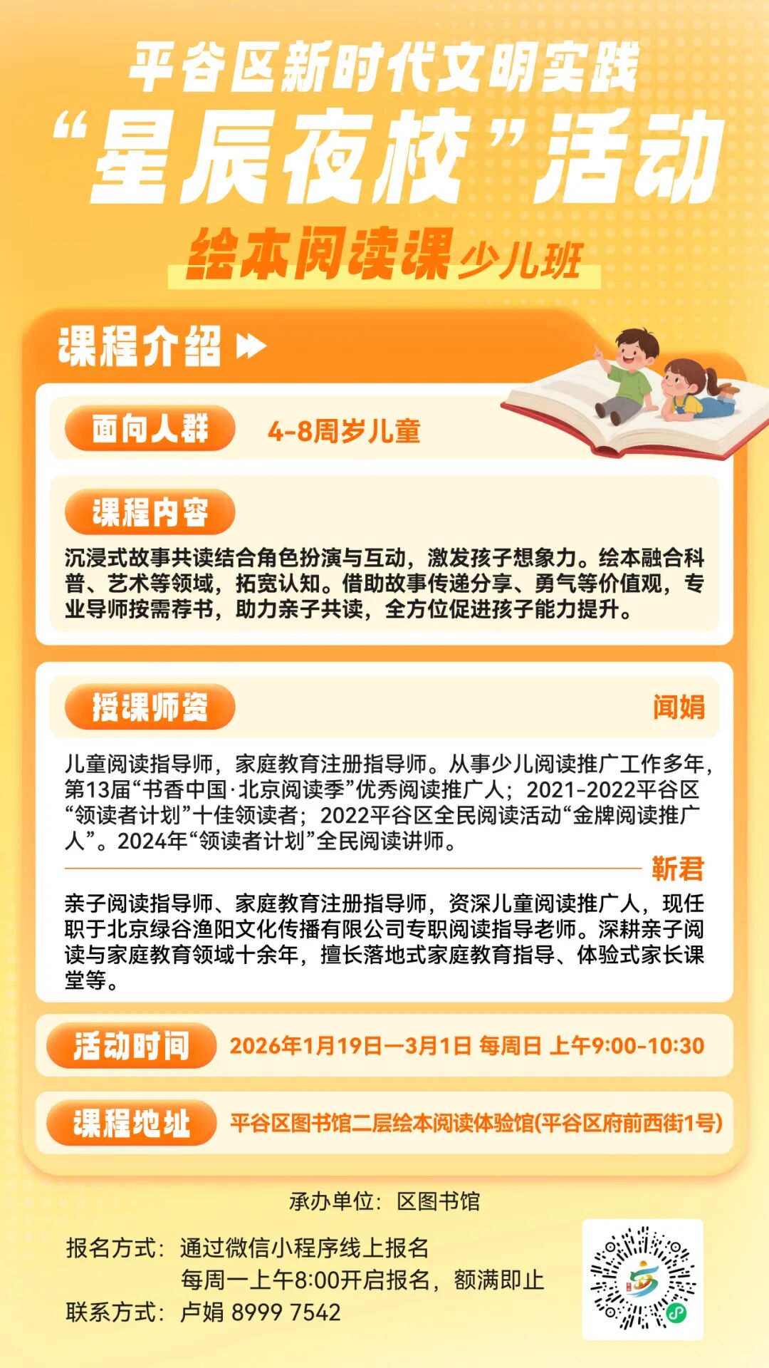 上课地点: 平谷区图书馆二层绘本阅读体验馆(地址:平谷区府前一号)