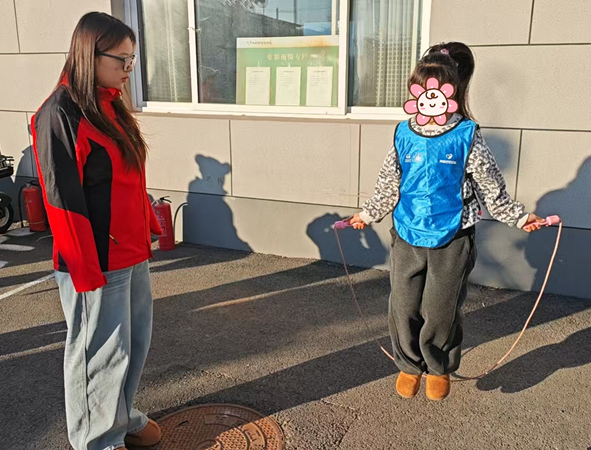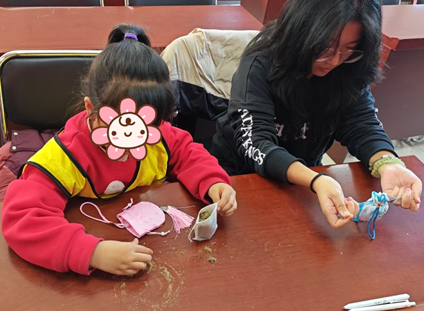 活动现场暖意融融,手工区尤为热闹。毛球画工坊内,小朋友们在老师的指导下挑选彩球、将一颗颗绒球错落粘贴,创作出各具创意的立体画作,指尖流转间释放心情与灵感。香包制作区,艾草、香料等材料香气四溢,亲手制做寓意吉祥的特色香包,感受传统手工艺的魅力。室外跳绳场地同样活力满满,小朋友们跳跃的身影伴着欢声笑语,展现出昂扬向上的精神风貌。