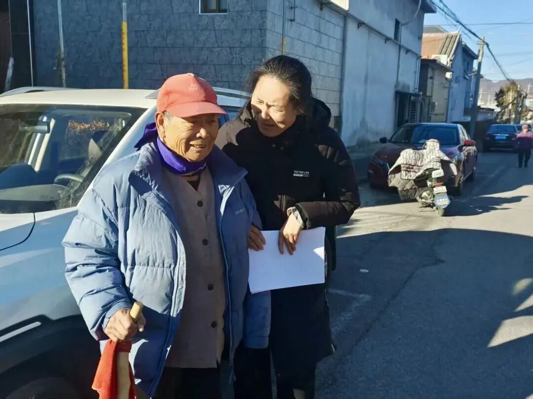 “这么冷的天气,你们还特意来看我……”老人们握着工作人员的手,连声道谢。工作人员利用走访时机,坐下来与老人亲切交谈,聊聊家常、询问需求。一次次的握手与对话,不仅送上了冬日的温暖,更体现了基层服务中的人文关怀。