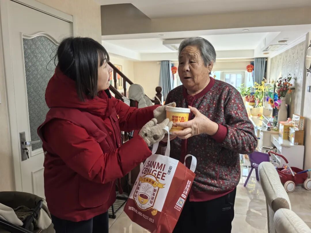 活动当天,学生代表两人一组领取腊八粥、福字、对联、窗花等慰问物资,跟随社区工作人员分批入户,为老人们送上热气腾腾的腊八粥、与老人共同张贴福字窗花,用暖心举动营造新春氛围;社区工作人员为老人普及冬季防滑、用电安全等知识,询问并记录其生活需求,学生们则围坐老人身边倾听过往故事,以真诚交流传递温情。
