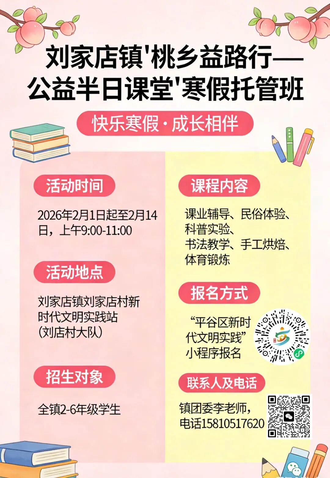 刘家店镇寒假公益托管班招募!25个名额,趣味课程伴娃成长~