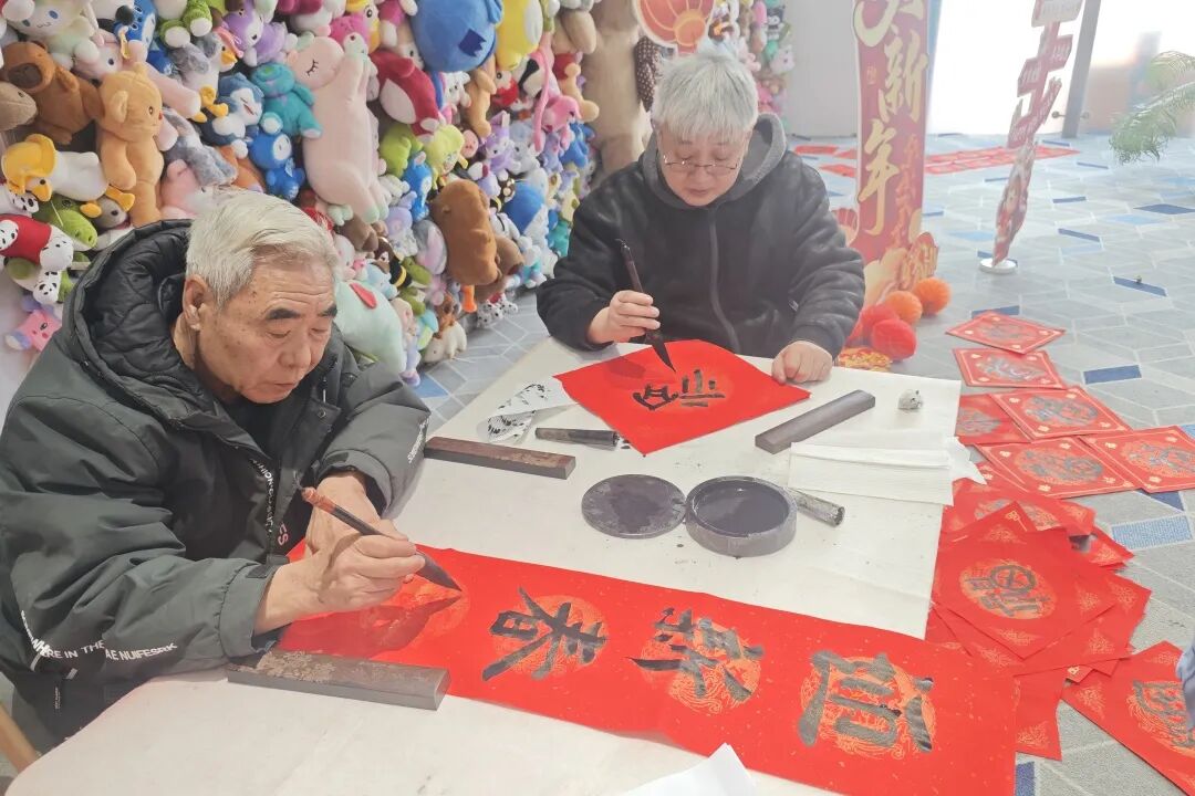 日前,镇新时代文明实践所联合党群服务中心,依托渔阳年货节开展“迎新春·写福字·送祝福”主题书法惠民活动。活动邀请南埝头村书法爱好者以笔墨传情,丰富群众精神文化生活,营造浓厚的新春氛围。