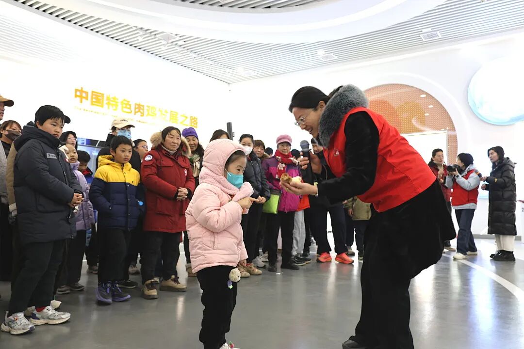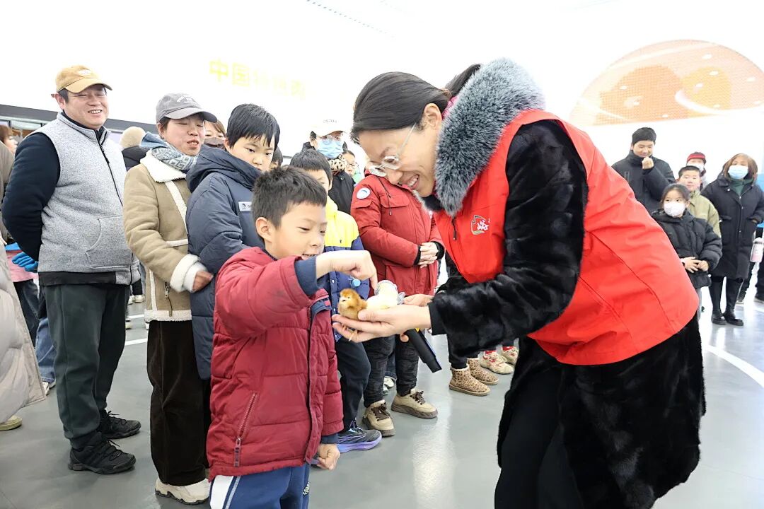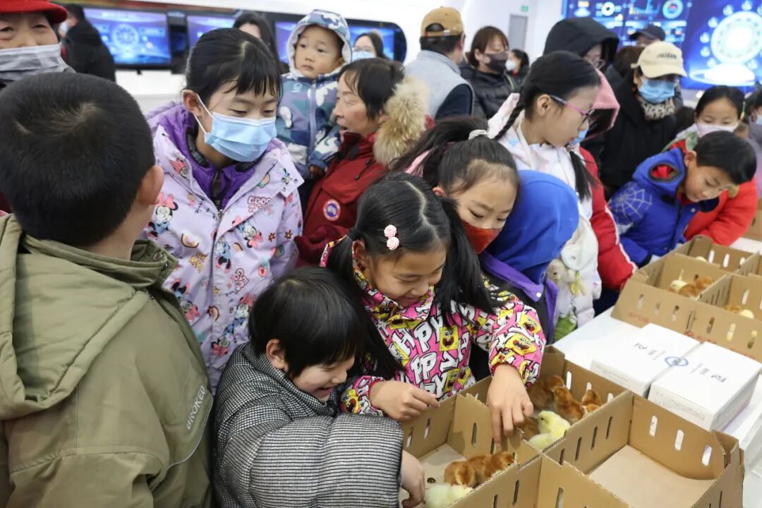 展厅内的巨大电子屏上,全国鸡舍的环境数据、鸡群生长动态实时跳动,精准饲喂、科学防疫的全流程清晰展示,让大家直观读懂了安全禽产品的培育密码。雏鸡互动区里,毛茸茸的一日龄小鸡更是萌化全场,孩子们轻轻抚摸着这些小生命,现场满是欢声笑语。到了“十分钟吃鸡”品尝环节,鲜美的口感让大小朋友们赞不绝口,这份科技赋能的美味,让不少孩子直呼“太过瘾”!