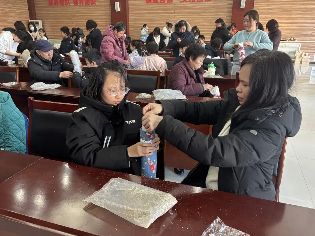 活动特邀平谷榜样志愿服务队队长、七彩阳光康复中心负责人王晓悦,以及平谷区阳光学校校长、党支部书记张小营担任榜样嘉宾。张小营校长结合多年专门教育经验,围绕青少年心理成长与亲子沟通之道作了生动分享,为家长们在陪伴孩子过程中可能遇到的情绪与行为问题提供了温暖而专业的引导。在榜样力量的引领下,50余组亲子家庭共同动手制作艾草颈枕,在缕缕艾香中感受传统技艺的魅力,于亲子协作间传递新春将至的温暖与祝福。