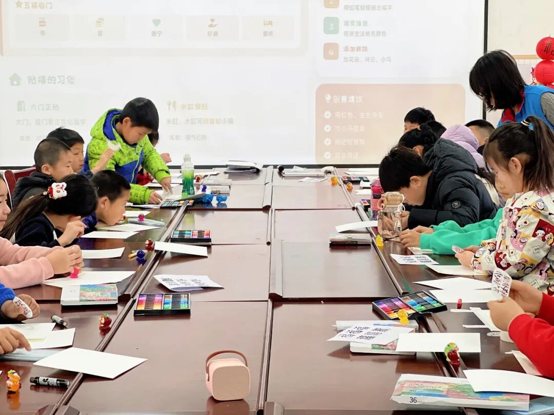 课堂伊始,工作人员以生动鲜活的讲述,为同学们开启了一场趣味十足的民俗之旅。从腊月“扫尘迎新”的传统习俗,到贴年画时暗藏的祈福寓意,老师用孩子们听得懂的语言,将抽象的民俗知识转化为一个个有趣的小故事。同学们瞪大好奇的眼睛,不时举手提问,在互动交流中,渐渐读懂了年味里藏着的文化密码,也对即将到来的马年充满了期待。