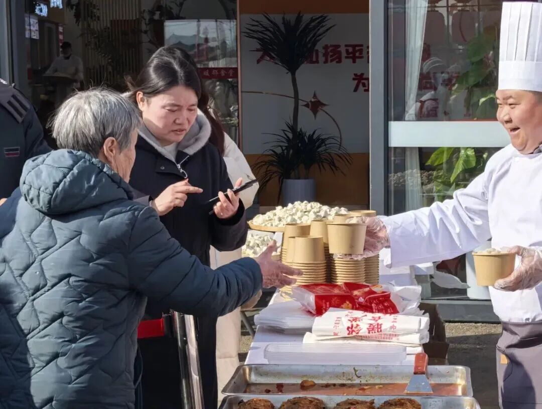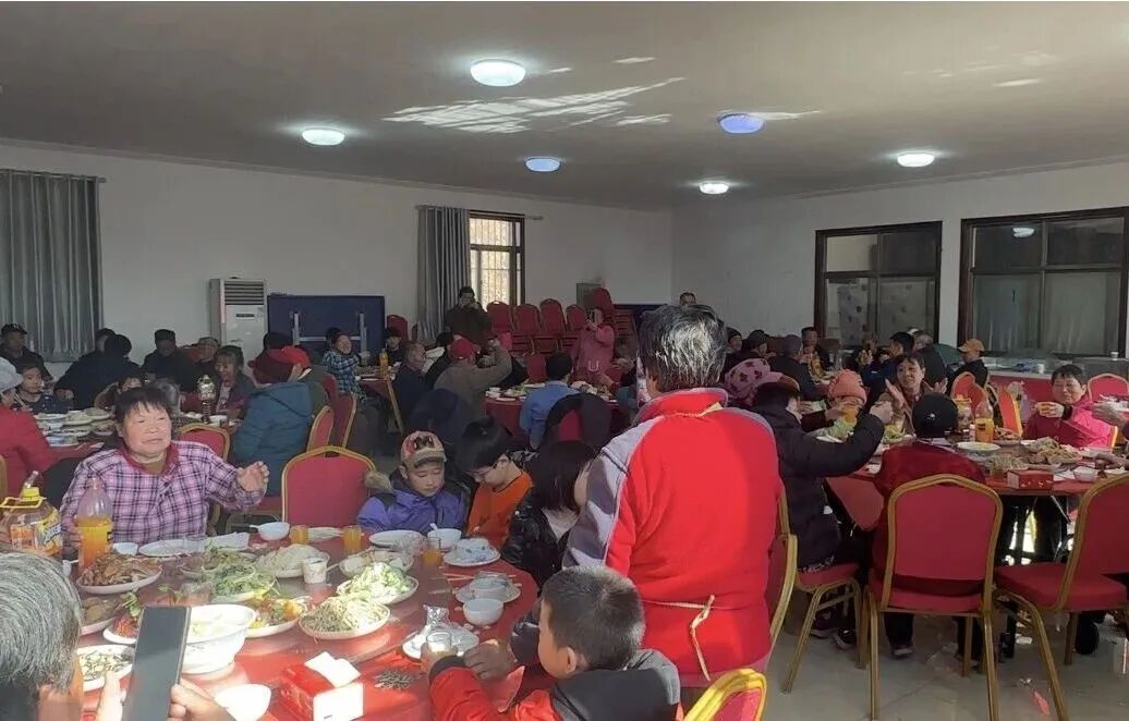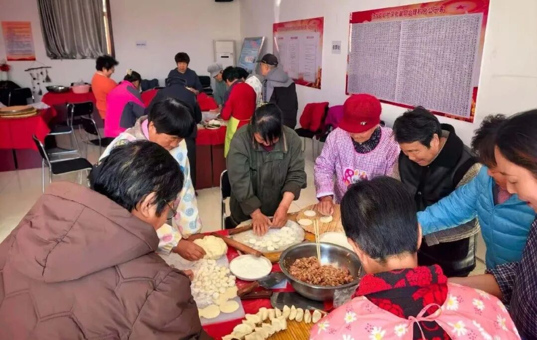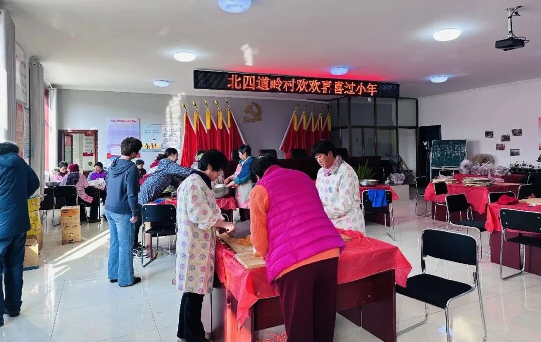 镇罗营镇北四道岭村的小年活动由村民自发组织、全员参与,村委会广场变身“共享厨房”,妇女们分工包饺子,男村民架灶备炊,热气腾腾的饺子、炖菜、炸货摆满长桌,全体村民欢聚畅谈,尽显邻里互助、民风淳朴的乡村风貌,是乡村精神文明建设的生动体现。