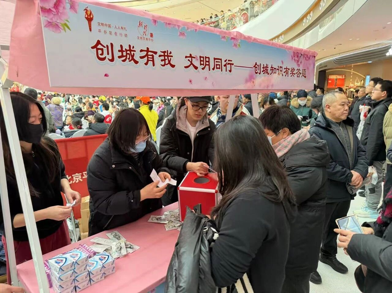 为传承中华优秀传统文化,培育和践行社会主义核心价值观,丰富群众精神文化生活,营造欢乐文明的节日氛围,2月7日下午,平谷区委宣传部、区新时代文明实践中心在万达广场一层中庭举办“文明迎新春 送福到万家——我在新时代文明实践中心过寒假暨文化科技卫生‘三下乡’”集中示范主题活动。区委宣传部、区文旅局、区卫健委、区文联、区商务局、区科信局、区司法局、区科协、区融媒体中心及各乡镇街道相关负责同志参加活动。
