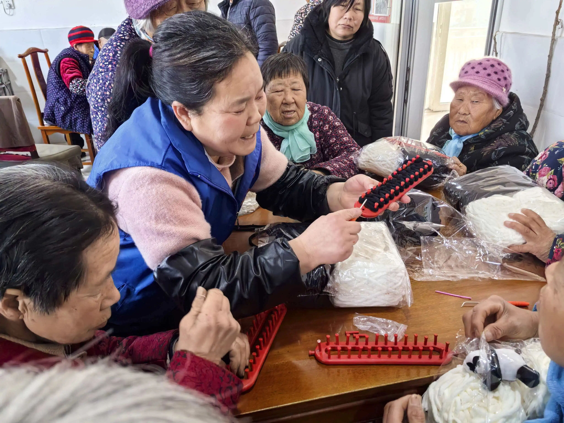 大家指尖翻动间,松散的粗毛线通过专用工具渐渐成型。每一个动作都透着认真与欢喜,指尖的温度化作冬日里最暖心的陪伴,也织出了晚年生活的乐趣。