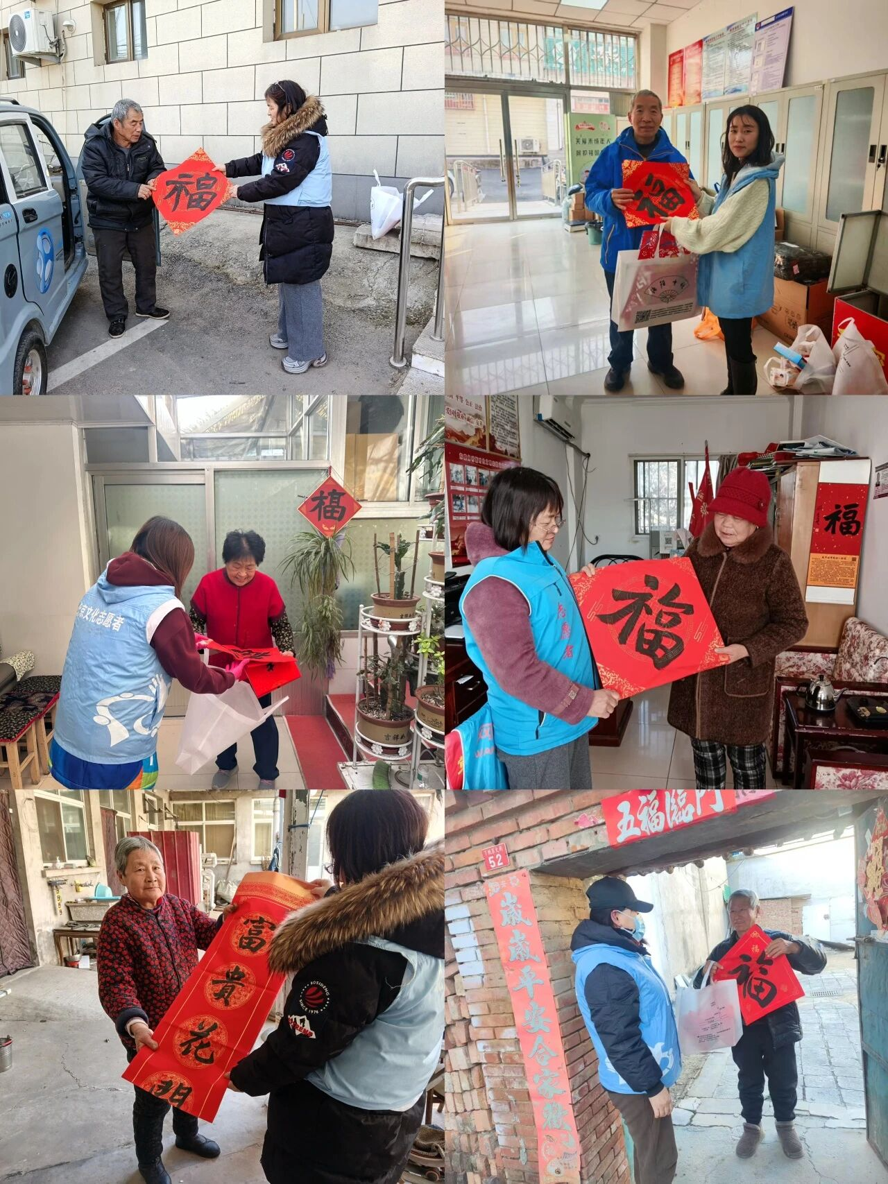 为进一步扩大活动覆盖面,让更多群众共享文化盛宴、共迎新春佳节,文化志愿者们还走进镇域内公园、便民市场等人流密集区域开展送福活动。活动现场,志愿者与居民欢聚一堂,过往群众纷纷驻足停留,有序排队领取福字和春联,现场洋溢着喜庆祥和的节日氛围。与此同时,各村居文化志愿者也深入辖区居民家中,上门送福、赠送春联,与居民亲切交流,传递新春的温暖与祝福。