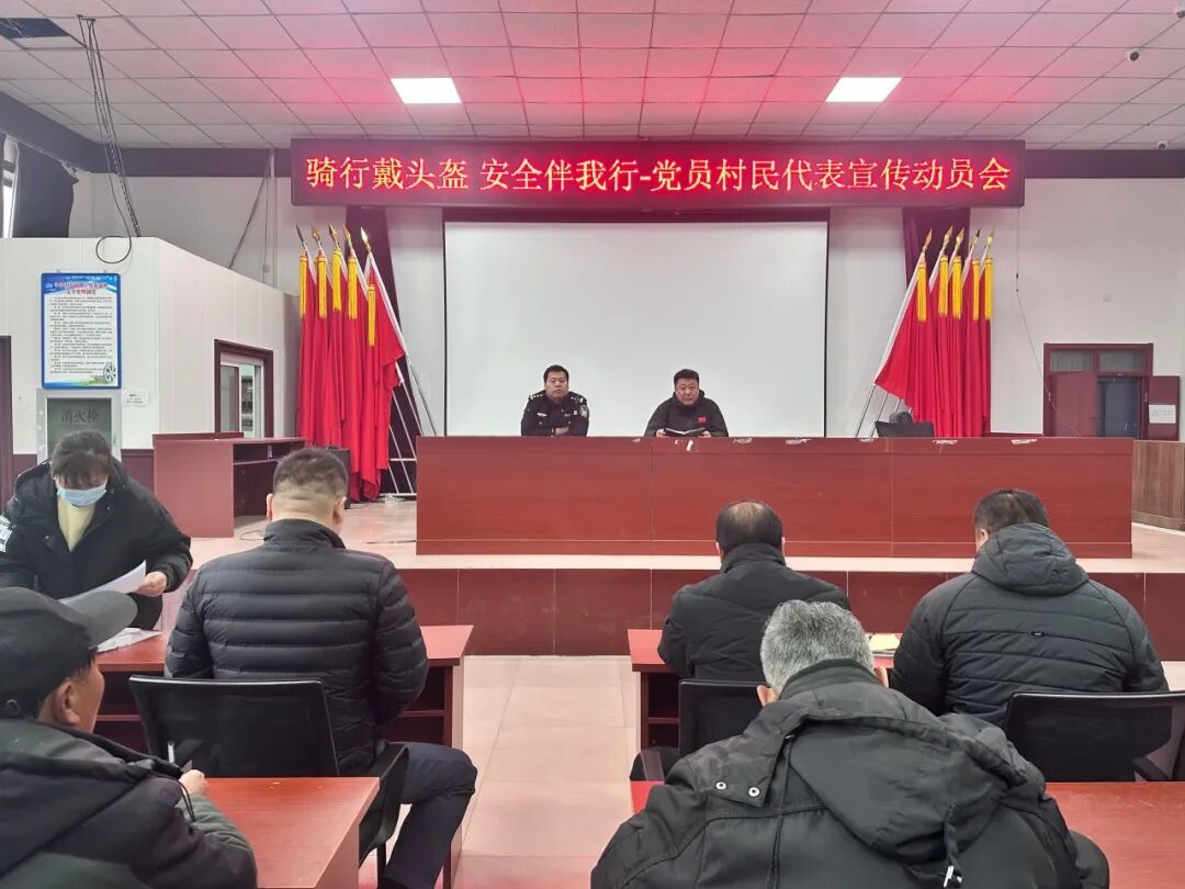 黑水湾村为夯实宣传基础,召开“骑行戴头盔 安全伴我行”党员及村民代表宣传动员会,特别邀请金海湖派出所包片民警到场参会。民警结合身边典型事故案例,直观讲解骑乘非机动车不佩戴安全头盔的危害,明确交通安全规范;村干部与党员代表带头表态、率先垂范,以先锋作用带动村民自觉遵守交通规则,筑牢村级安全宣传第一道防线。