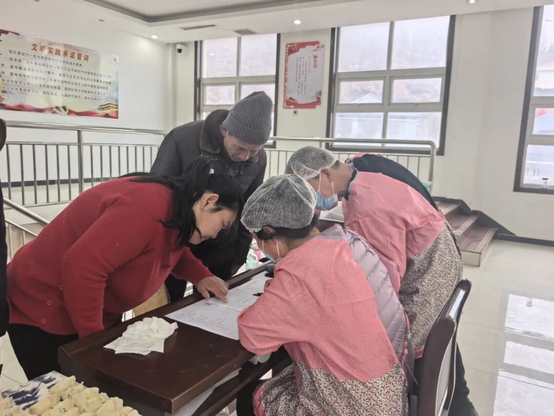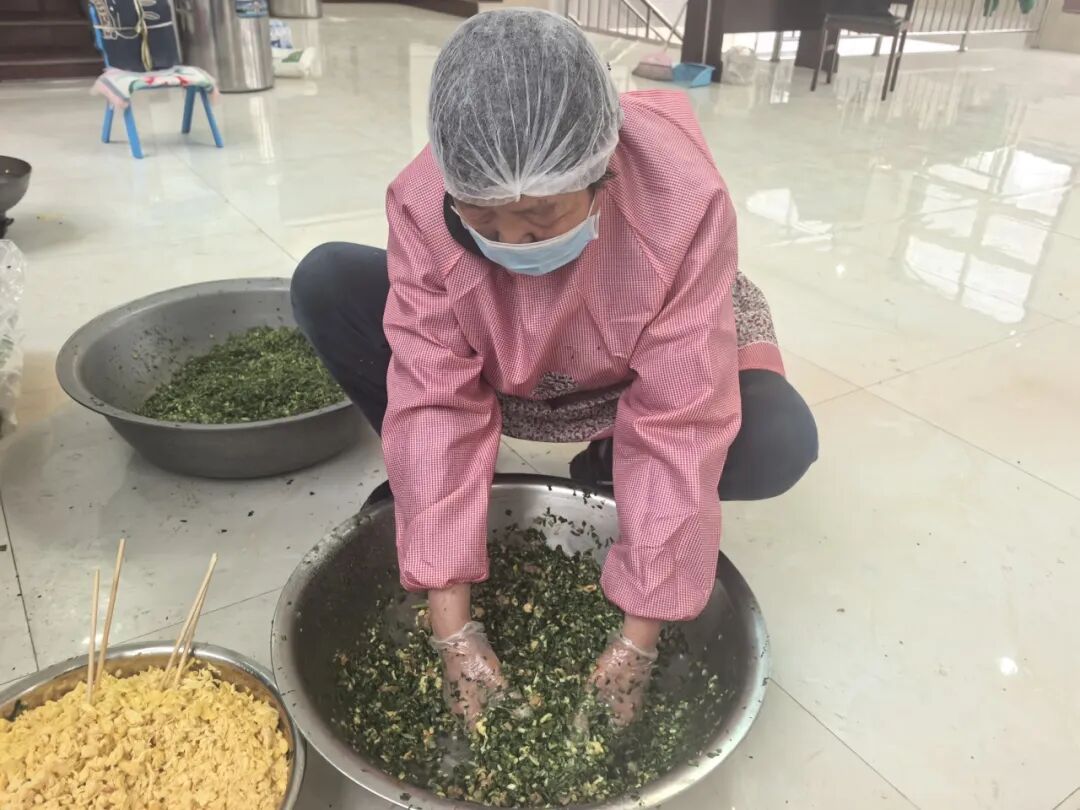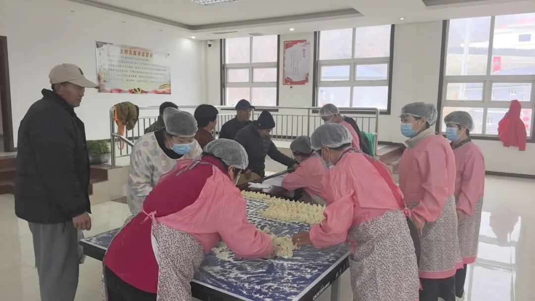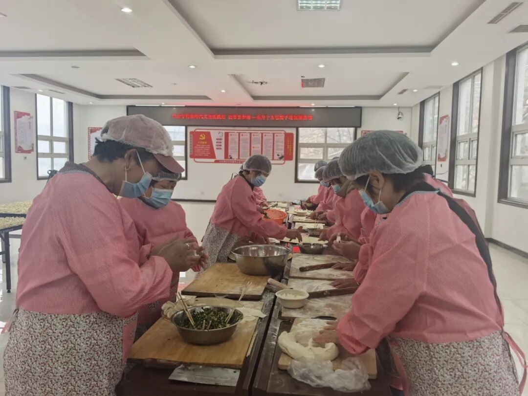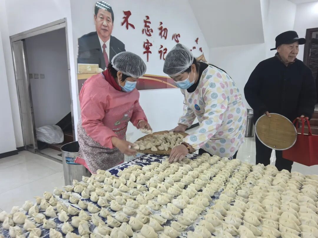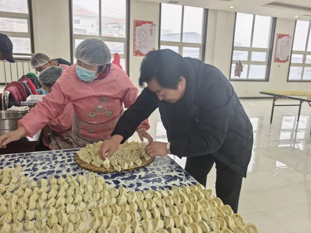一大早,村“两委”干部、网格员和志愿者们就忙碌起来,大家分工协作,配合默契。调馅、和面、擀皮、包饺子……个个动作娴熟,忙得不亦乐乎。现场气氛热烈,大家一边包着饺子,一边唠着家常,交流着各家各户春节期间的趣闻乐事,将对邻里乡亲的美好祝愿,连同鲜美的馅料一起,包进了这一个个圆鼓鼓的饺子里。经过一上午的忙碌,一盘盘白白胖胖、满载着爱心与祝福的饺子便整齐地摆满了案板。