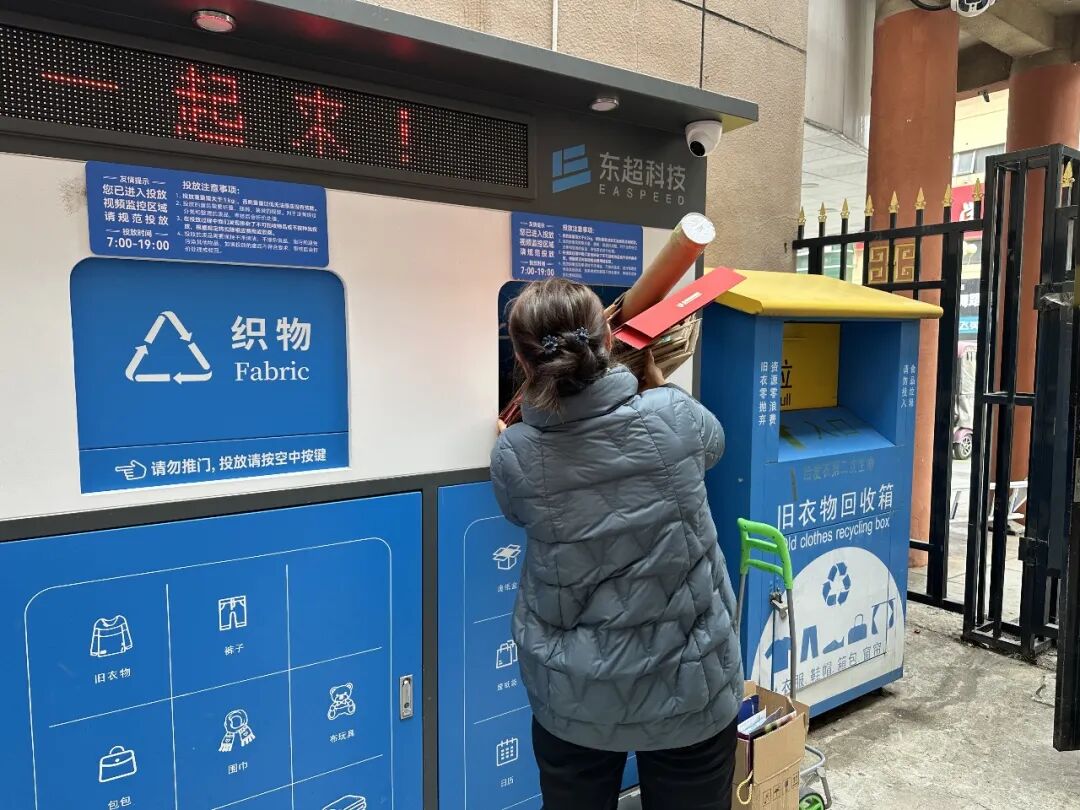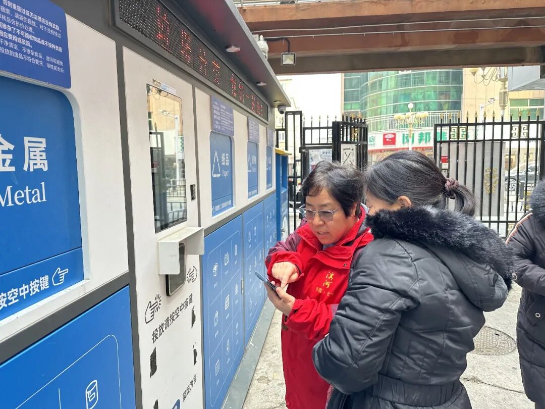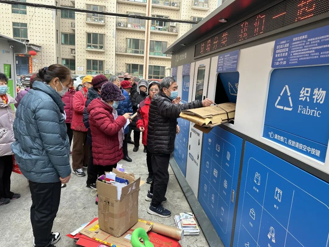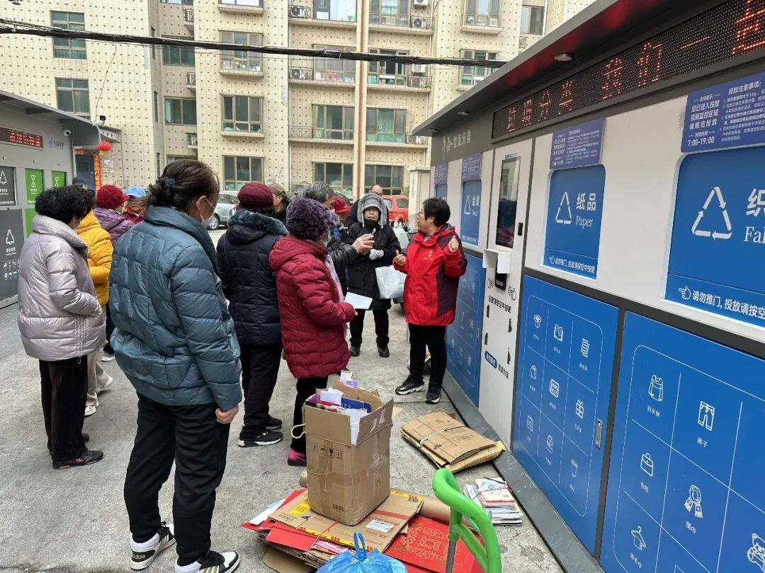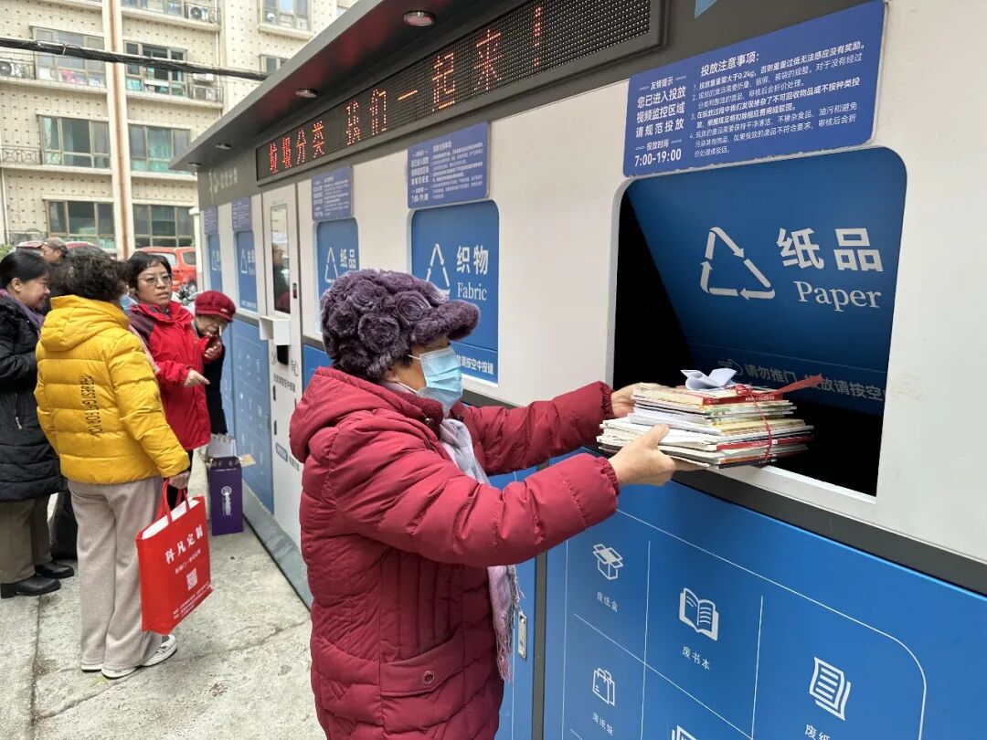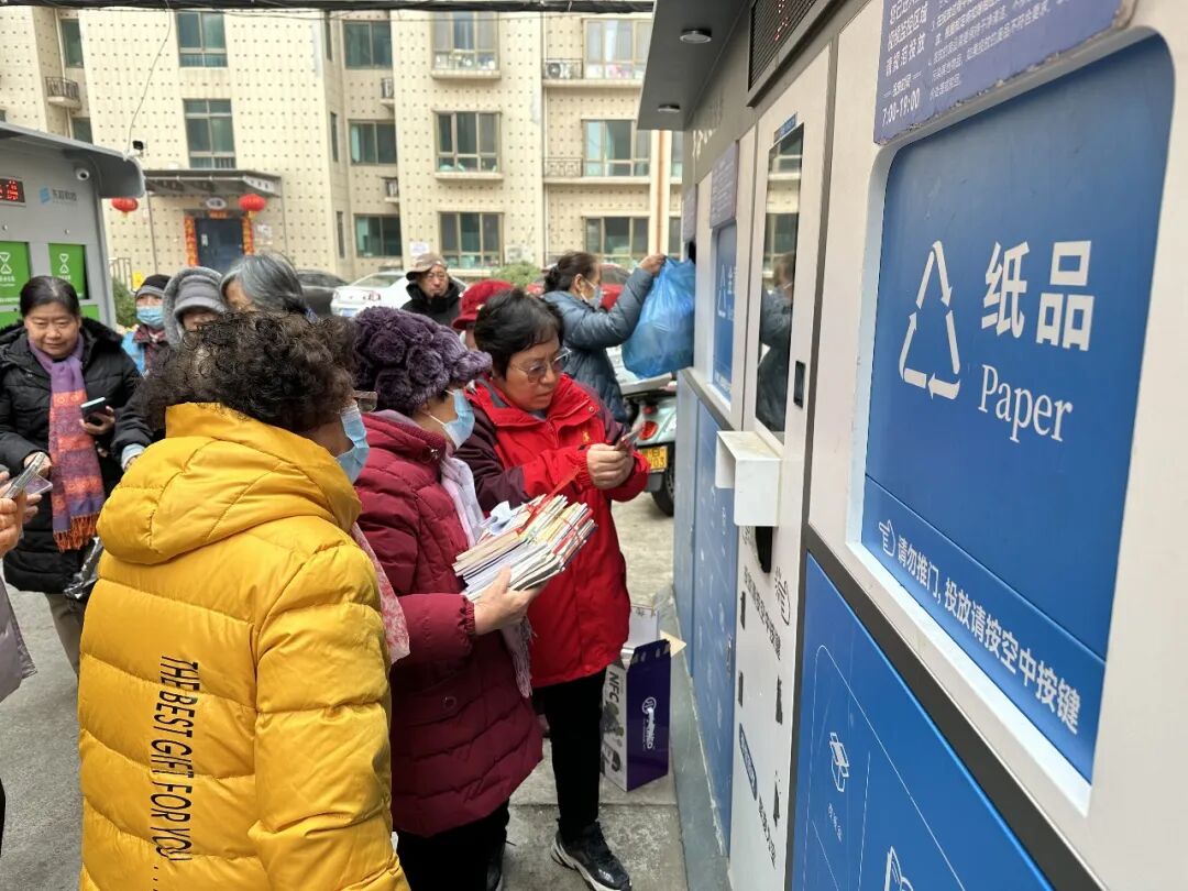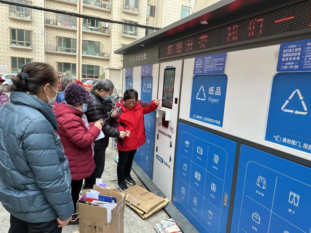 在工作人员的协助下,居民们有序将家中整理的废纸、塑料瓶、废旧衣物等可回收物带到智能回收站,按照分类指引规范投放。大家边操作、边交流,在实践中熟悉智能设备功能,掌握分类投放技巧。不少居民表示,智能回收设备操作简便,还可提现,既方便又环保,有效解决了家中可回收物无处存放、随意堆积的问题。