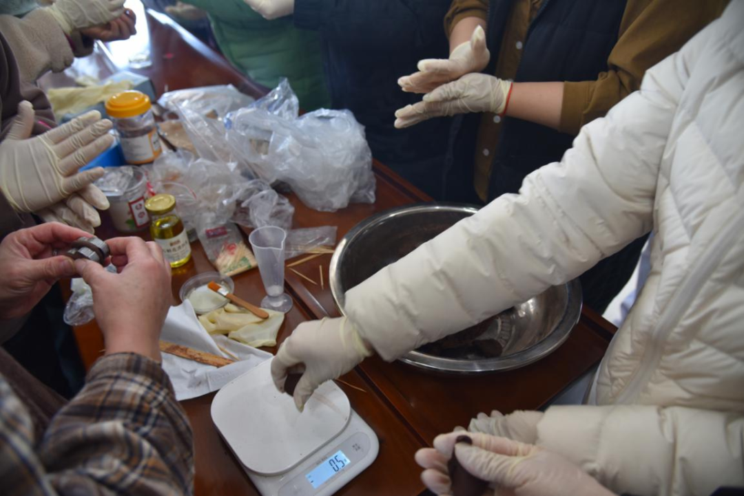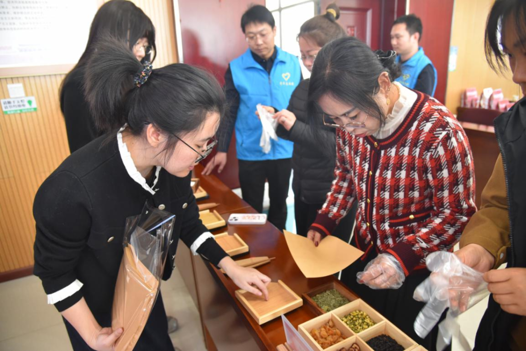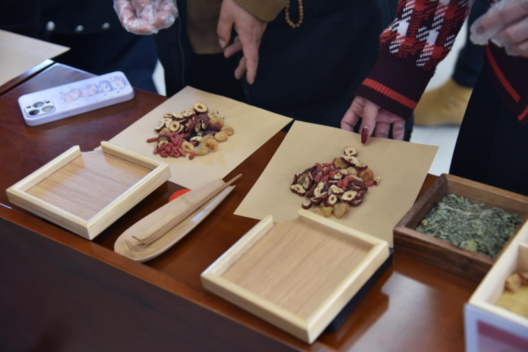 最受欢迎的当属互动体验环节。大家先通过中医AI体质辨识,快速获取专属体质报告及推荐茶饮方案;随后分组体验药香珠制作和女性药茶调配。药香珠制作区香气袅袅,大家在老师指导下亲手完成配粉、揉泥、模具刷油、摁模具、脱模等工序,选用金锁、莲花、如意、富贵吉祥葫芦等精致模具,制成一枚枚寓意美好的药香饰品;药茶调配区,药茶师耐心指导大家根据自身体质调配专属茶包。活动现场还设置春季养生茶饮体验区,推出“桑菊饮”和“黄精桑椹固发饮”两款应季药茶,清润甘甜,深受喜爱。