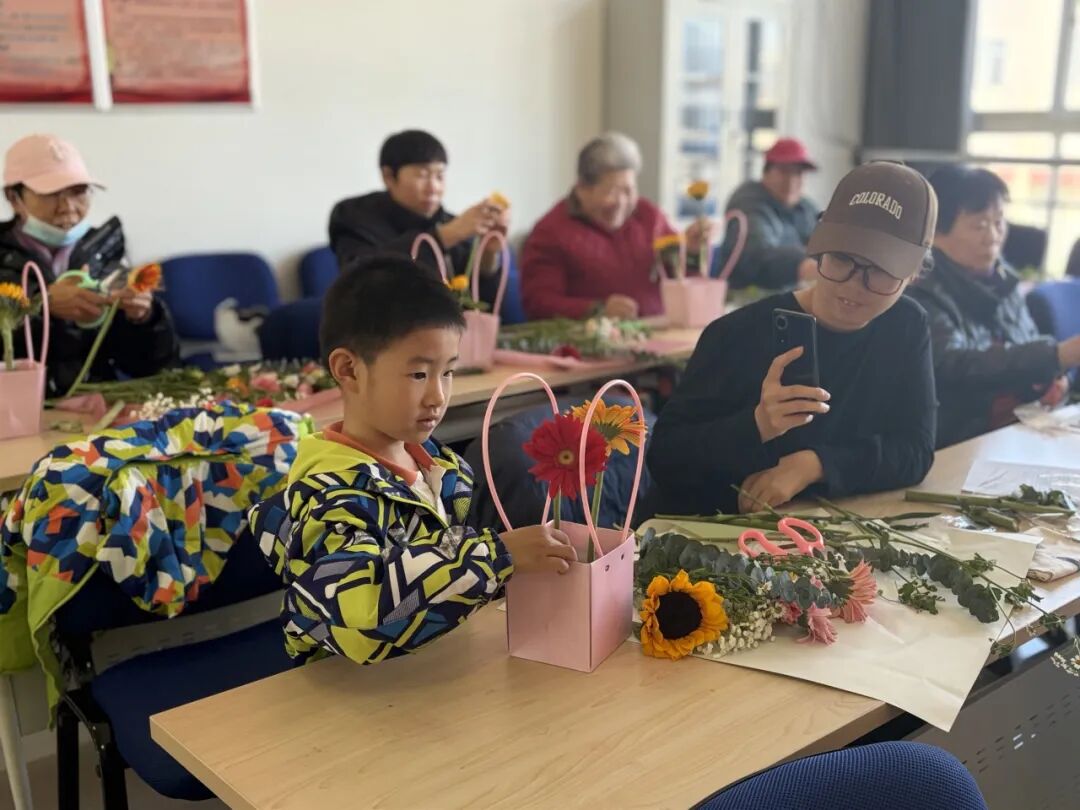 居民们兴致高涨,全程积极投入,纷纷表示这样的活动新鲜有趣、贴近生活,既能学到实用的花艺技能,又能与邻里欢聚互动,真切感受到节日的温暖与快乐。一件件精美的花艺作品陆续完成,大家手捧鲜花,脸上洋溢着幸福与自豪。