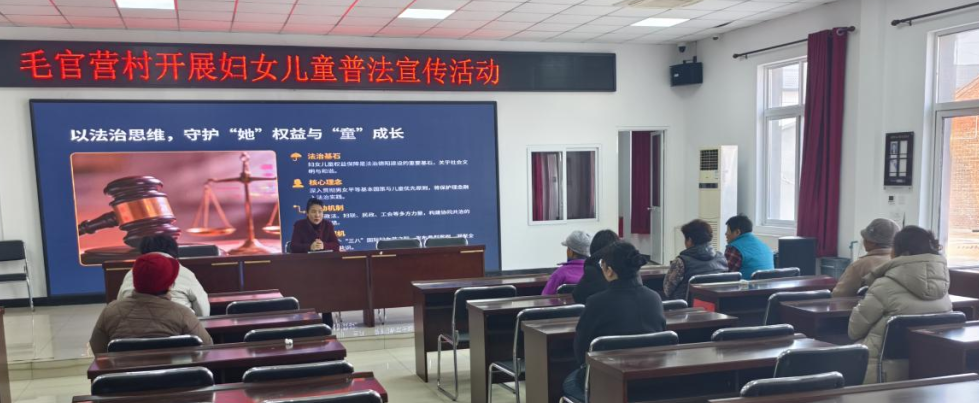 毛官营村开展妇女普法宣传活动,重点宣传《妇女权益保障法》《反家庭暴力法》等法律法规,用接地气的语言把法律知识送到妇女群众身边,引导大家尊法学法守法用法,学会用法律武器维护自身合法权益,为巾帼权益保驾护航。