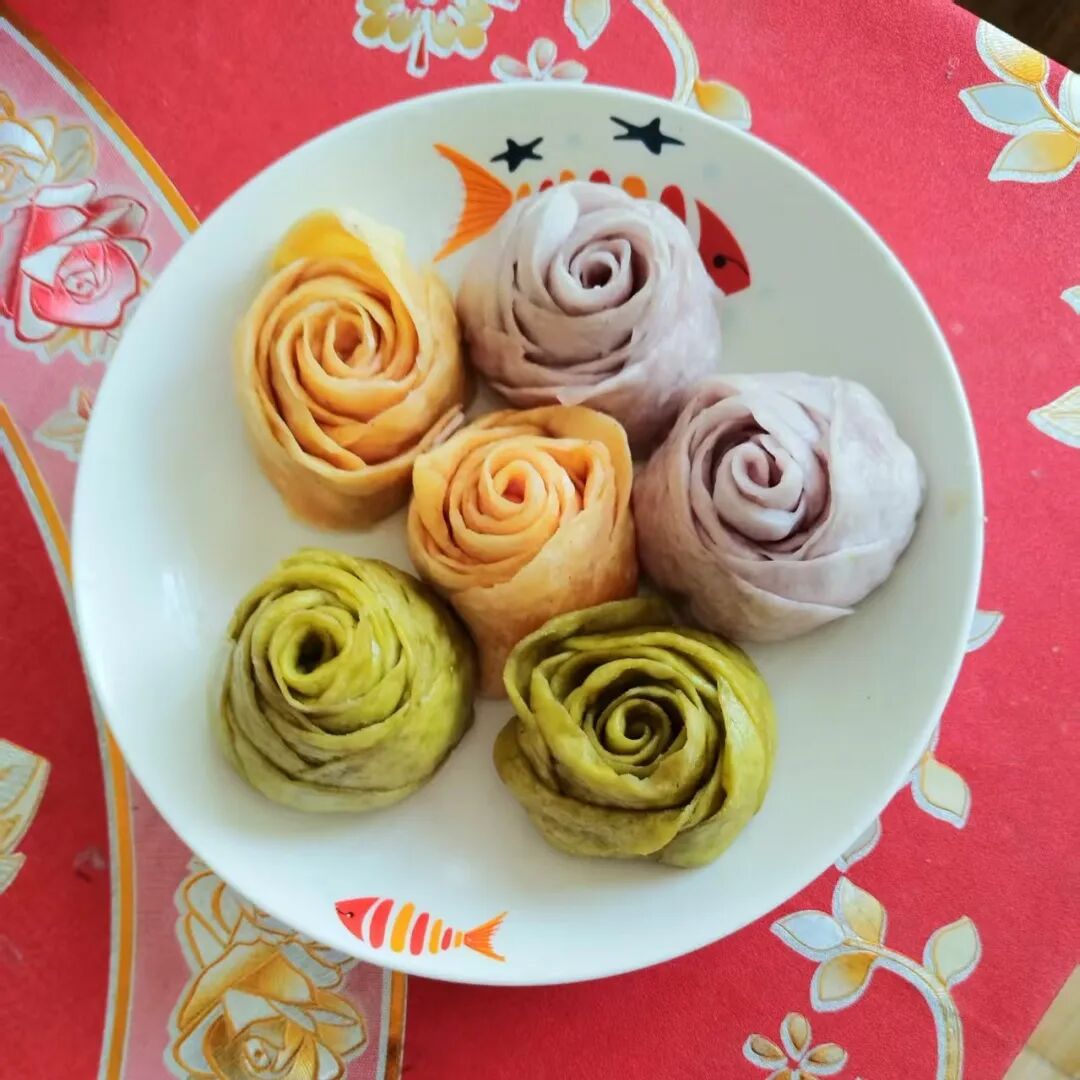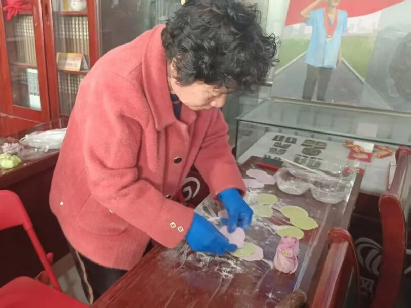 讲解结束后,妇女同胞们纷纷动手实践,揉面、擀皮、捏形、点缀,忙得不亦乐乎。志愿者们全程贴心陪伴、耐心协助,针对大家操作中遇到的难题,一对一进行指导,手把手传授技巧,帮助大家掌握捏制要领。不一会儿,一朵朵造型逼真、形态各异的玫瑰花花馍逐渐成型,有的娇艳饱满、层层叠叠,有的小巧玲珑、精致可爱,粉色、紫色的面团经过大家的巧手点缀,仿佛一朵朵盛放的玫瑰,每一件作品都凝聚着大家的巧思与热爱,承载着对幸福生活的期盼与对彼此的美好祝福。