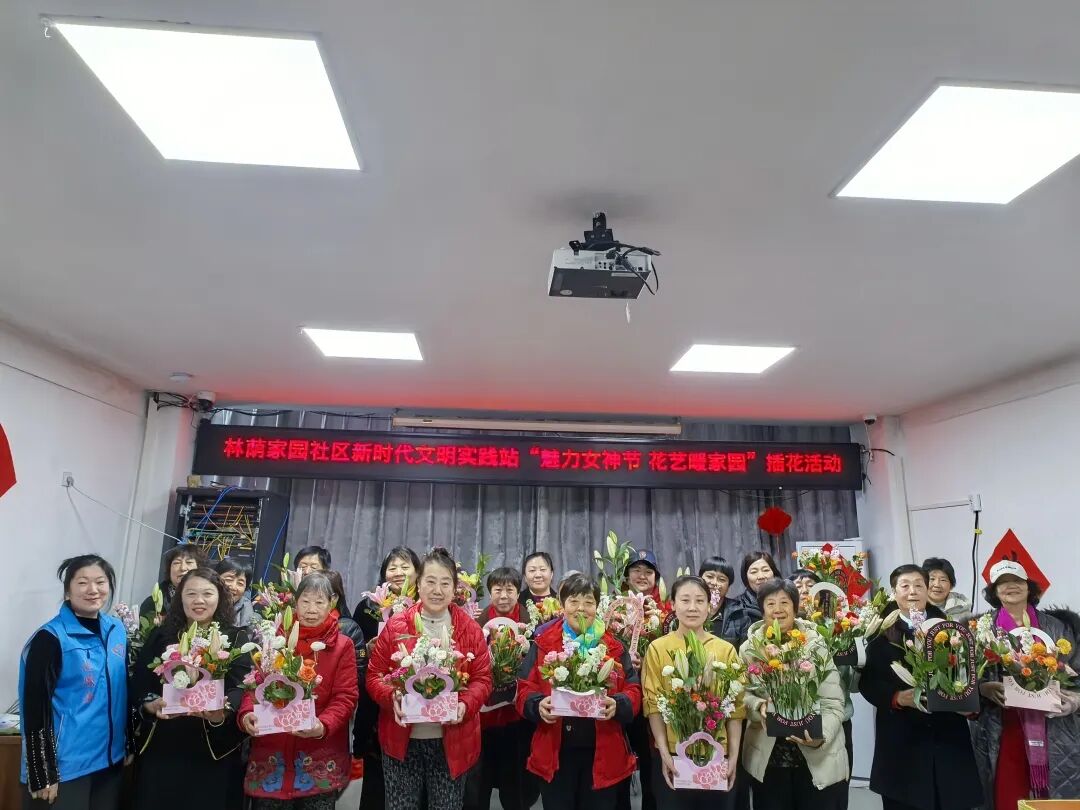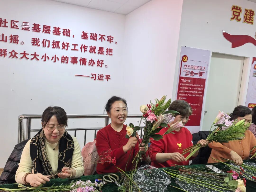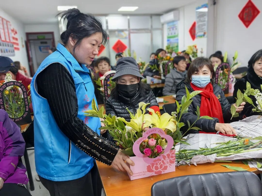 林荫家园社区开展“魅力女神节 花艺暖家园”主题插花活动,花艺老师讲解养护知识与插花技巧,社区女性动手创作花艺作品,在愉悦氛围中感受花艺魅力、舒缓身心、增进邻里情谊,传递了社区对女性居民的节日关怀与祝福。