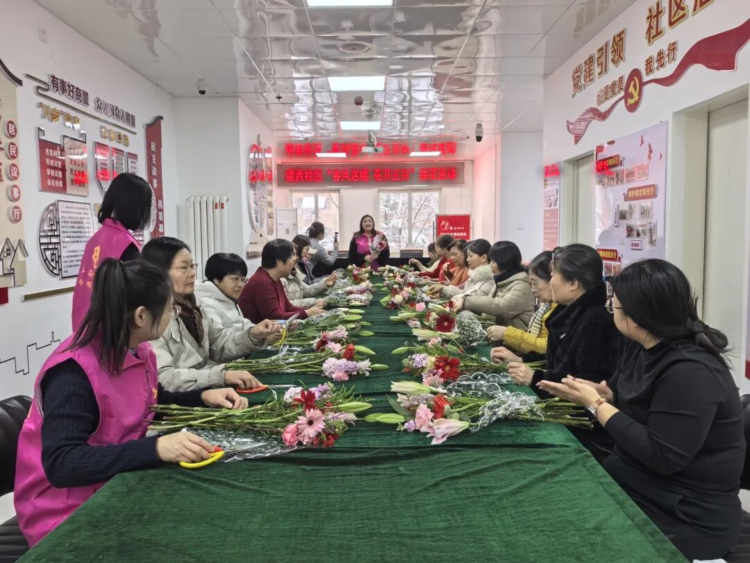 “春风送暖 花开正好”建西社区妇女节插花主题活动,滨河街道办事处副主任向国美及包居干部芮立霞参加,与辖区女性居民一同欢度节日。活动现场温馨热闹,社区准备了丰富花材与工具,并邀请专业花艺老师现场讲解鲜花知识、示范插花技巧,手把手指导大家创作花艺作品。居民们认真实践、交流心得,在欢声笑语中完成了精致的插花作品,既放松了身心、增进了情谊,也展现出新时代女性积极优雅、热爱生活的风采,参与居民纷纷对社区的贴心安排表示感谢。