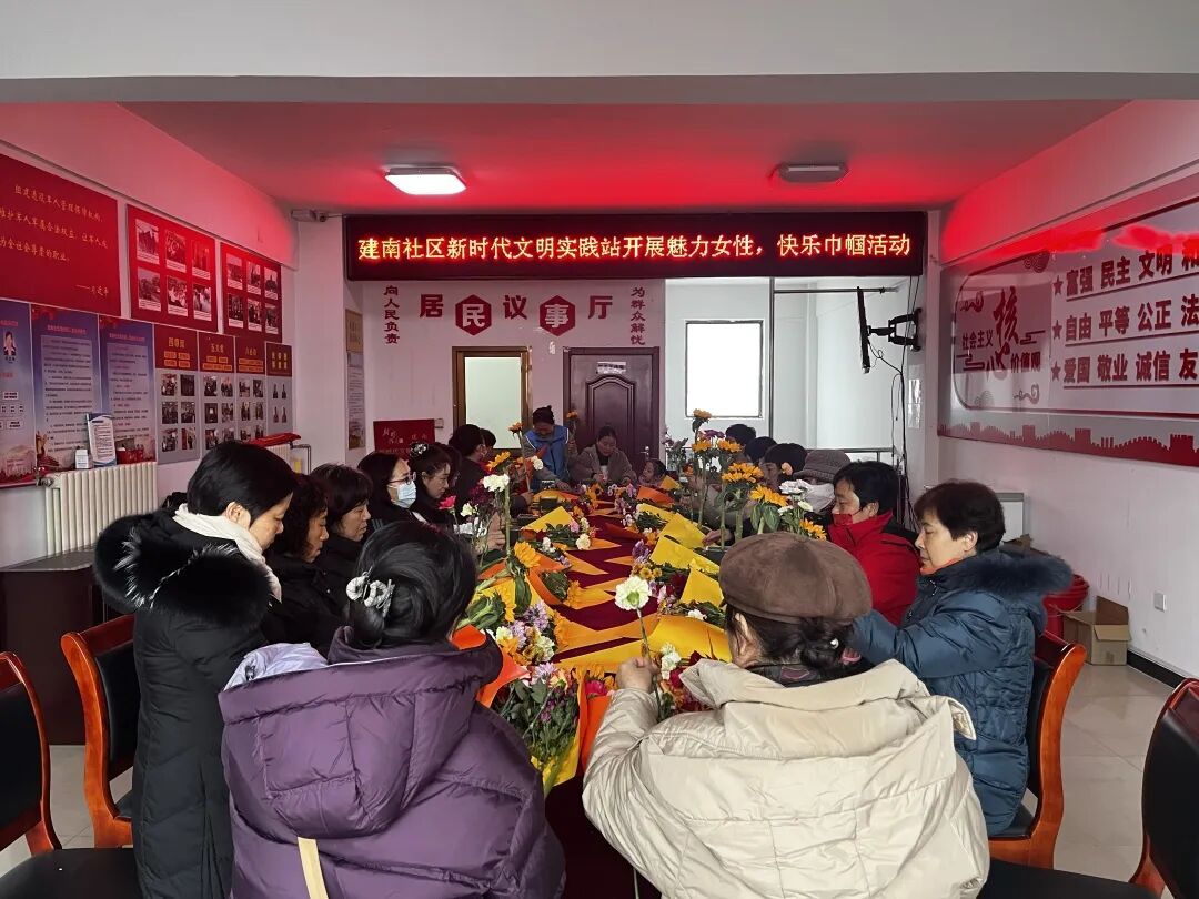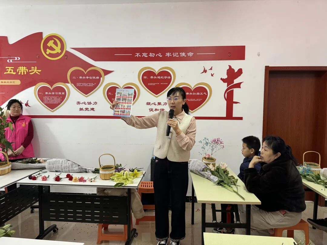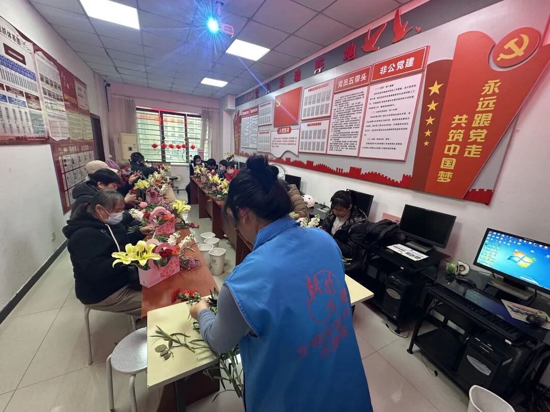 建南社区主题插花活动中,专业花艺老师现场讲解示范插花技巧,社区女性居民动手创作花艺作品,在愉悦氛围中感受生活之美、增进邻里情谊。