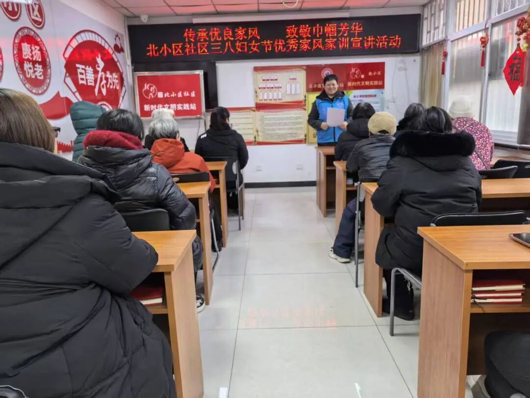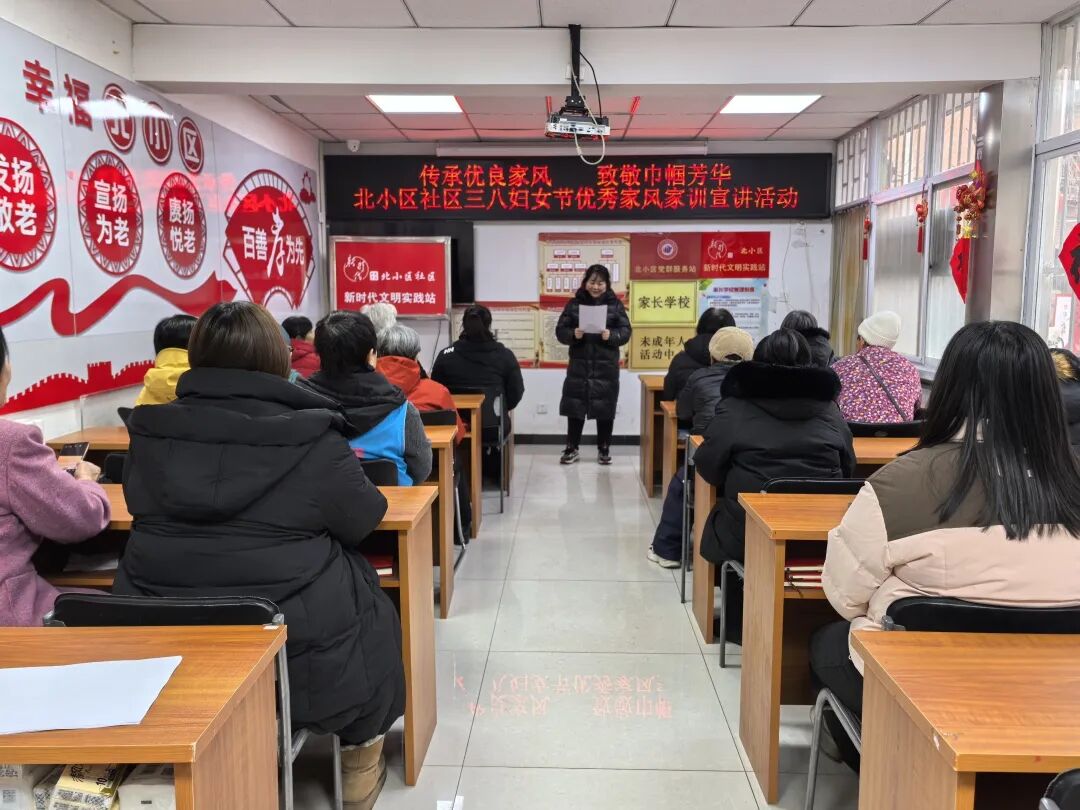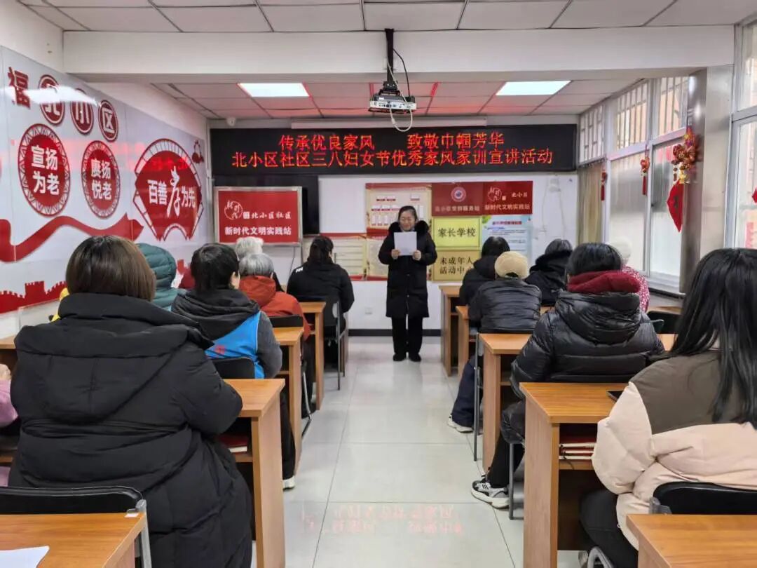 北小区社区开展“传承优良家风,致敬巾帼芳华·庆三八佳节”优秀家风家训宣讲活动,最美家庭、文明家庭代表分享家风故事,引导大家传承家庭美德、涵养优良家风,营造了文明和谐的社区氛围。