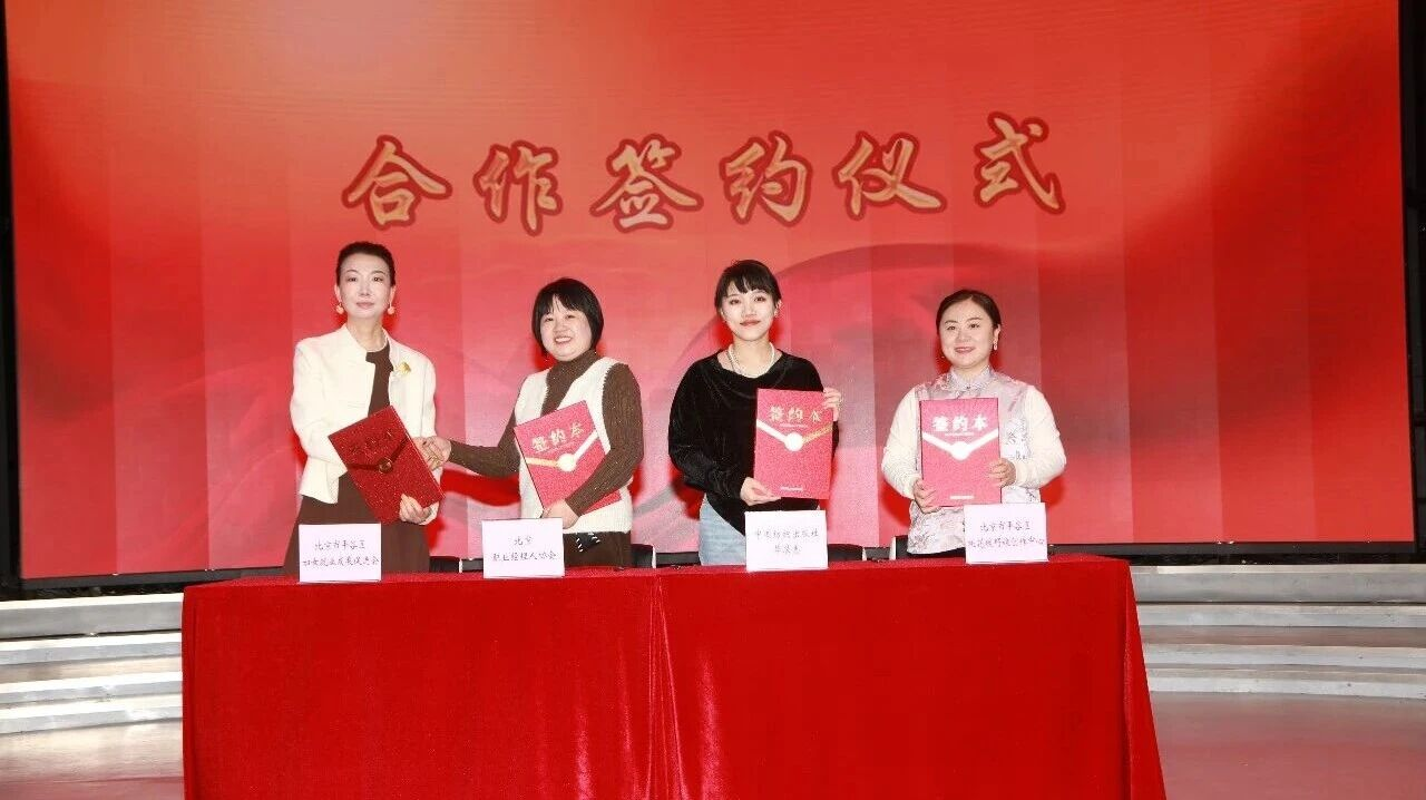 “爱业·暖业”篇章聚焦女性创业就业,彰显巾帼奋斗风采。平谷区妇联党组书记、主席徐桂敏发布《平谷区妇联助力妇女创业就业十项措施》,一系列务实举措为女性创业就业保驾护航、铺路搭桥;领导现场为2026年十个“北京农村妇女创新创业发展项目”发放启动资金,为女性创业者注入发展动能。随后,平谷区桃花媛巧娘创作中心与中国纺织出版社.华服志、平谷区妇女就业发展促进会与北京职业经理人协会分别签订合作协议,前者助力平谷巧娘手艺走向全国,后者为女性专业成长搭建快车道。《行走的非遗,创业的舞台》短片及牡丹绘服装秀,将非遗传承与创业实践深度融合,展现了平谷女性将传统技艺转化为发展优势的智慧,彰显了平谷的文化活力与产业潜力。