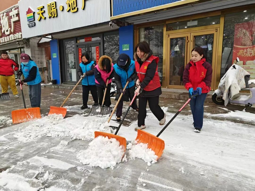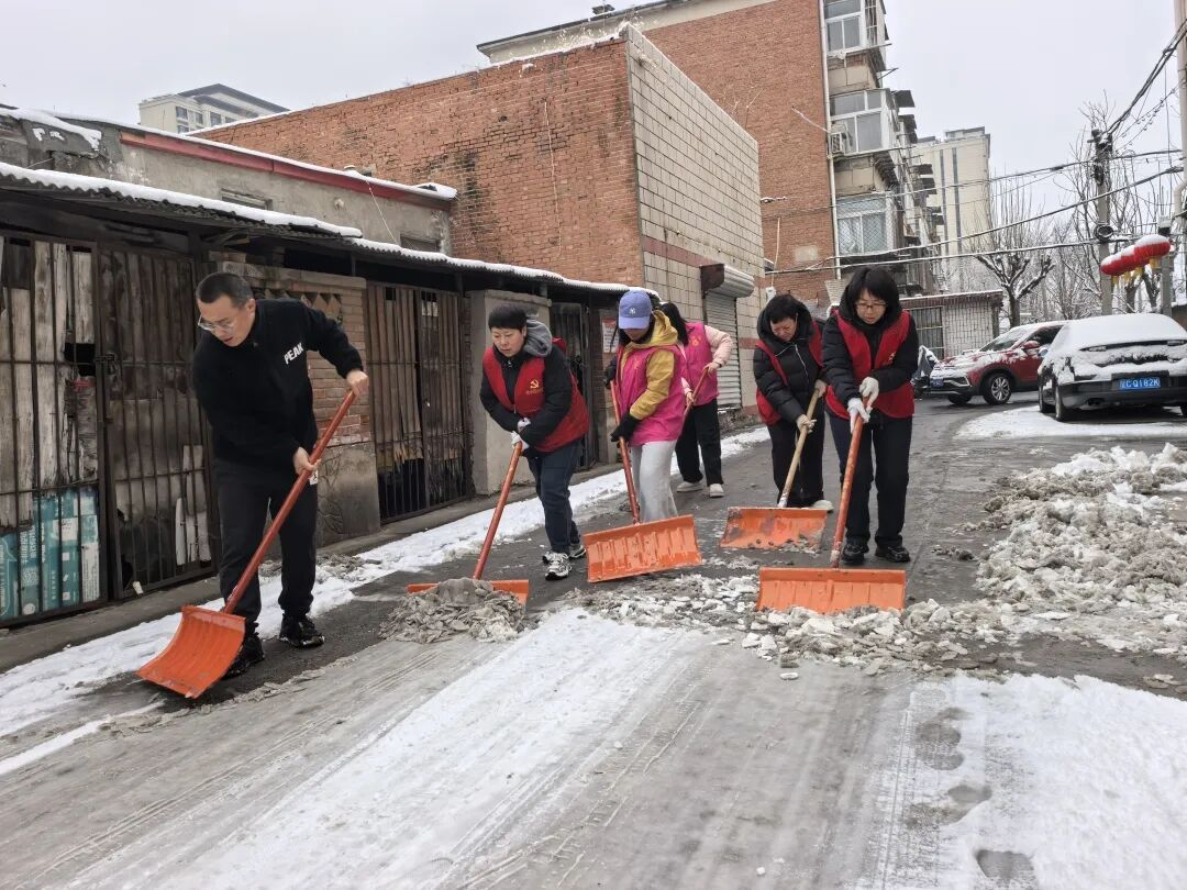 3月5日学雷锋纪念日当天,平谷区迎来瑞雪,为切实保障辖区居民出行安全,街道16个社区的志愿者们闻“雪”而动、以“雪”为令,纷纷携带推雪板、扫帚等工具,深入辖区主要路口、楼院出入口、健身园等重点区域,开展扫雪铲冰志愿服务活动。大家分工协作、默契配合,不畏春寒、不惧路面湿滑,有的奋力铲除积冰,有的认真清扫积雪,有的细致清理边角盲区,以饱满的热情和务实的行动投入到清雪除冰工作中,忙碌的身影在皑皑白雪中构成了一道温暖而动人的风景线。志愿者们用坚守与奉献全力打通居民出行“暖心路”,切实消除安全隐患,将雷锋精神转化为服务群众的实际行动。