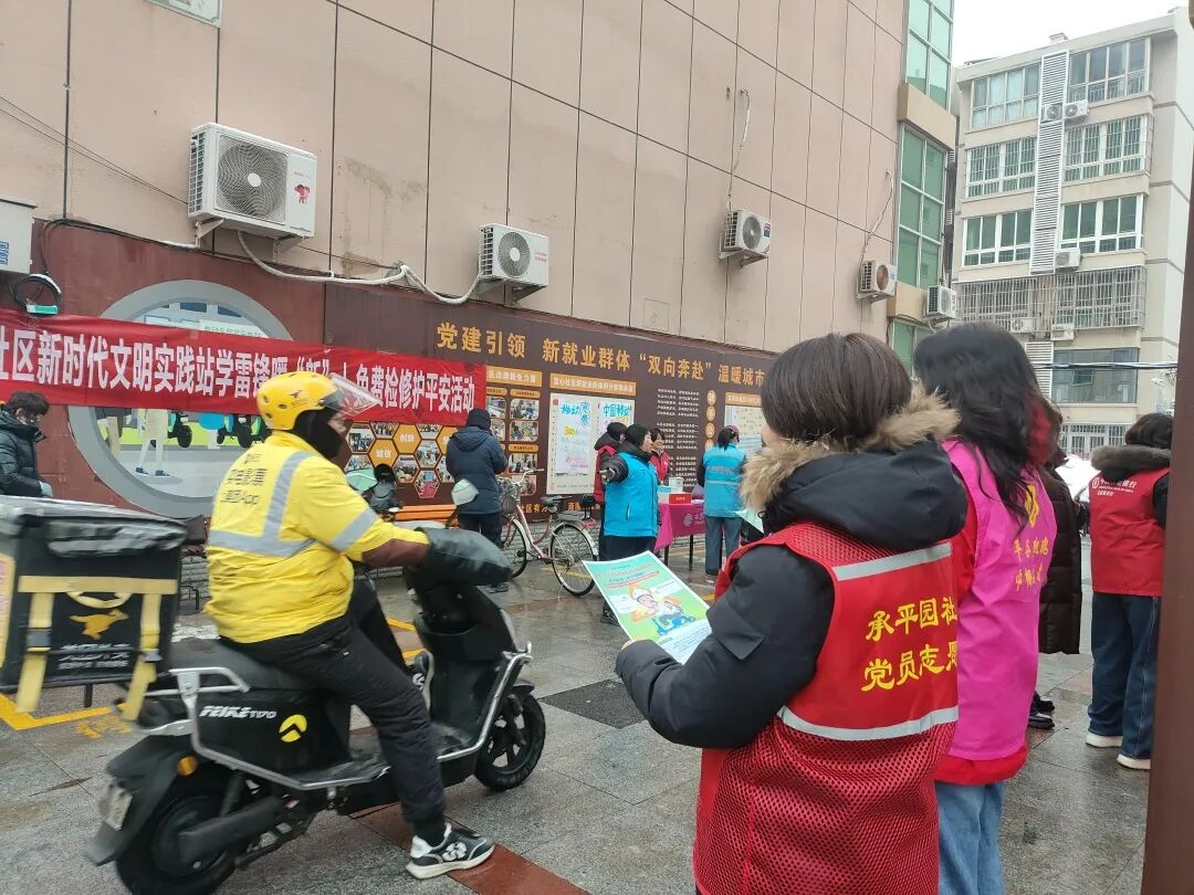 承平园社区组织工作人员、志愿者开展学雷锋志愿服务系列活动,聚焦辖区高龄老人,联合“小老人”志愿者与工作人员开展亲情陪伴、义务理发等暖心帮扶;联合宜心社区、中国移动,为外卖员、快递员等新就业群体打造“暖心驿站”,提供免费手机贴膜、电动车快修保障及暖心物资补给等服务;同时组织志愿者走进汽车站维护候车秩序、帮扶特殊乘客,并在社区开展“一盔一带”宣传、文明劝导及礼品发放工作,以实际行动关爱特殊群体、服务新就业群体、助力文明建设,让雷锋精神在社区落地生根、温暖人心。