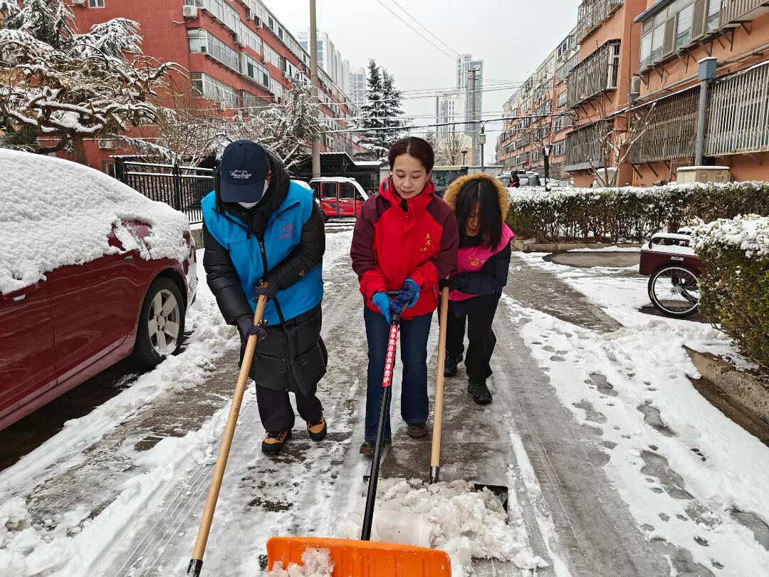 瑞雪纷飞,道路积雪给群众出行带来不便。青年志愿者们以雪为令,天刚破晓便迅速集结,手持铁锹、扫帚奔赴主干道、广场等重点区域。大家分工协作,铲冰扫雪,不惧严寒,不放过一处死角。连续奋战后,积雪积冰全面清理,道路恢复畅通,群众出行安全得以保障。冻红的双手、湿透的鞋袜,换来的是清晨第一条畅通的道路——他们用行动诠释“青春先行”的担当,让“志愿蓝”成为雪天最暖的风景。