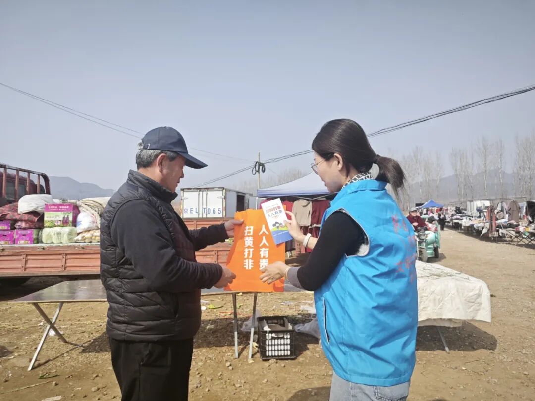工作人员走进万庄子大集,设立宣传点位,向过往群众发放“扫黄打非”宣传折页、宣传袋,耐心解答群众咨询,细致普及非法出版物、网络低俗信息的危害,引导群众自觉抵制不良风气,主动参与到“扫黄打非”工作中来,共同营造健康向上的社会文化环境。